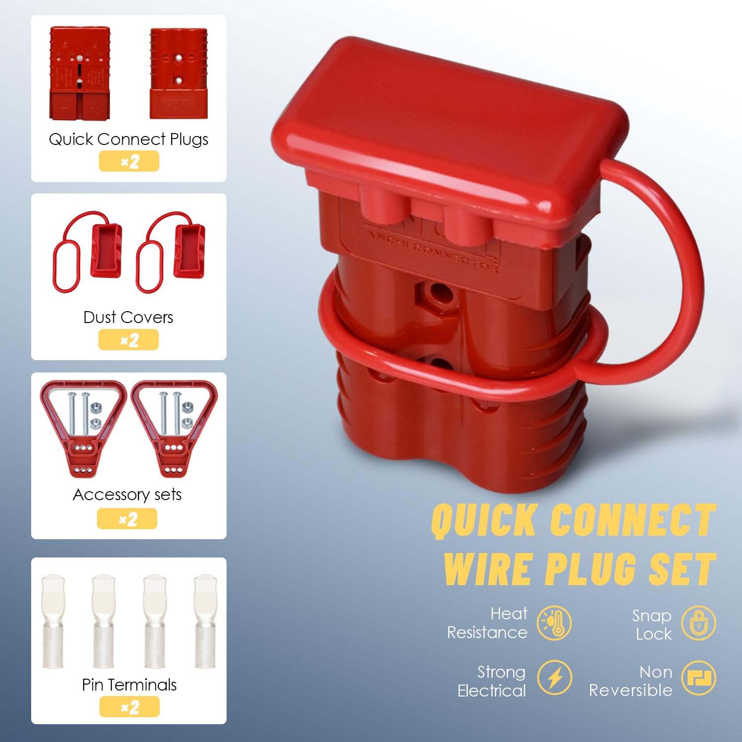 Descrição do Produto: Kit 350 Amp 2Pcs Connectors Plugs 350A Quick Connect Disconnect 600 V