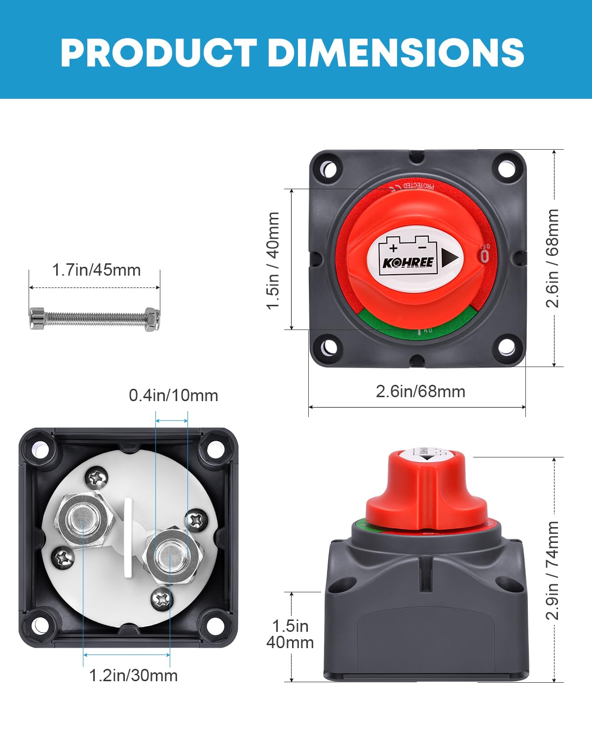 Overall, the Kohree Battery Disconnect Switch is a high-quality, easy-to-use solution for managing power in various electrical systems. It’s perfect for solar setups in trailers, boats, and other vehicles. We highly recommend it for its reliability and ease of installation!
