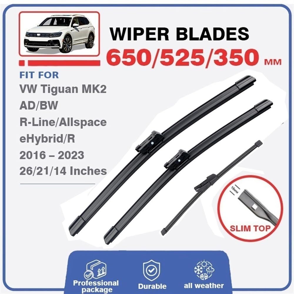 Descrição do Produto: LHD RHD Front Rear Wiper Blades Compatíveis com Volkswagen Tiguan MK2 (2016-2023)