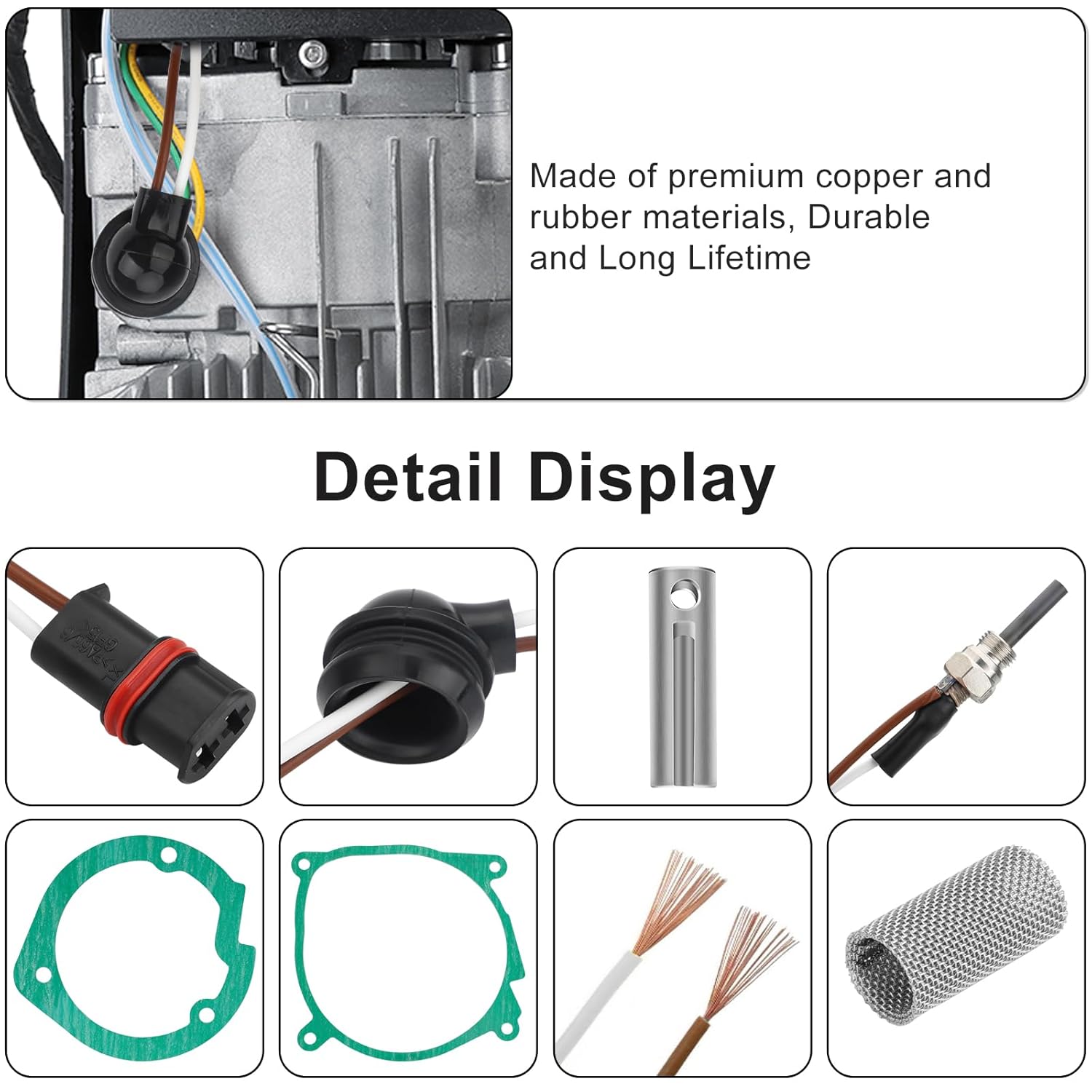 - Material de Alta Qualidade: O kit de velas de ignição para aquecedores de estacionamento é fabricado com materiais de cobre e borracha de alta qualidade, oferecendo durabilidade excepcional, resistência à corrosão e uma longa vida útil.