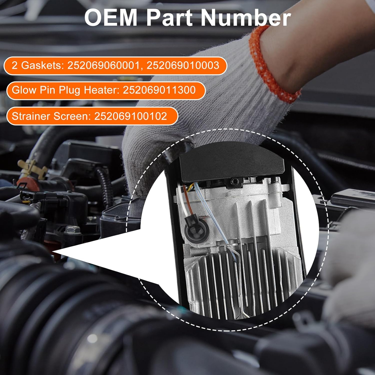 - Número da Peça OEM: Vela de Ignição: 252069011300, Tela de Filtro: 252069100102, Juntas: 252069060001, 252069010003.