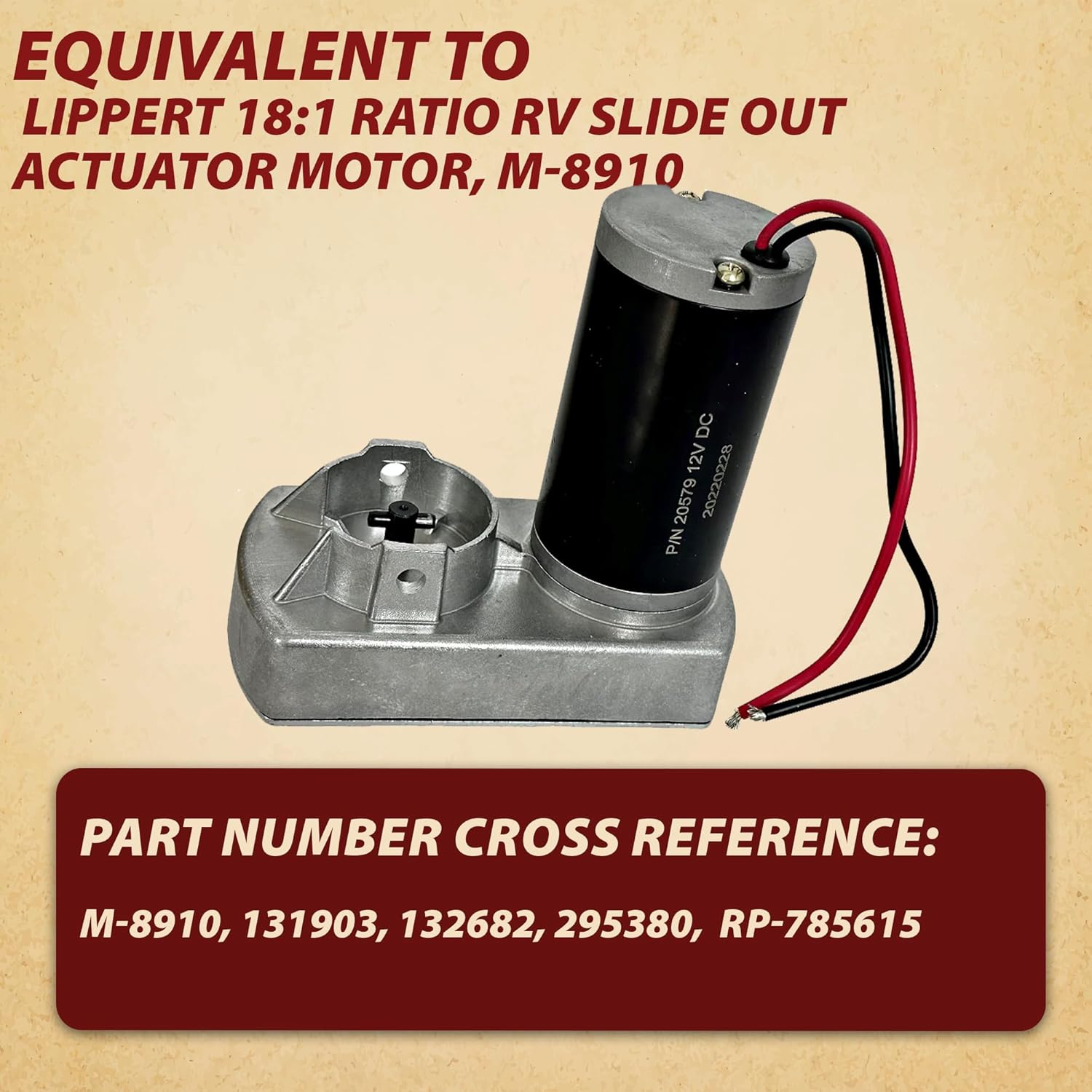 Descrição do Produto: Lippert 7694597 OEM Quality RV Slide Out Through Frame 30AMP Motor Only Venture Tuson Replacement – 18:1 M-8910