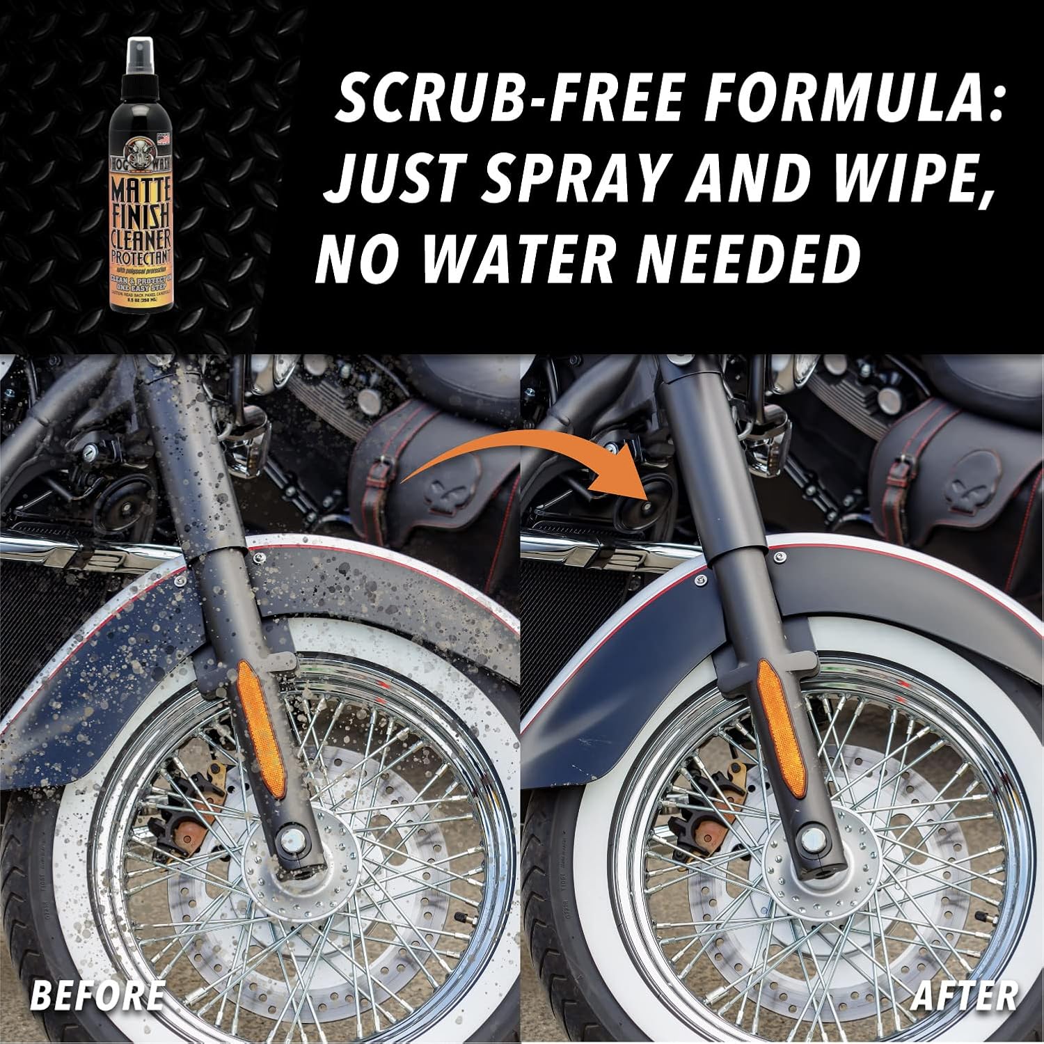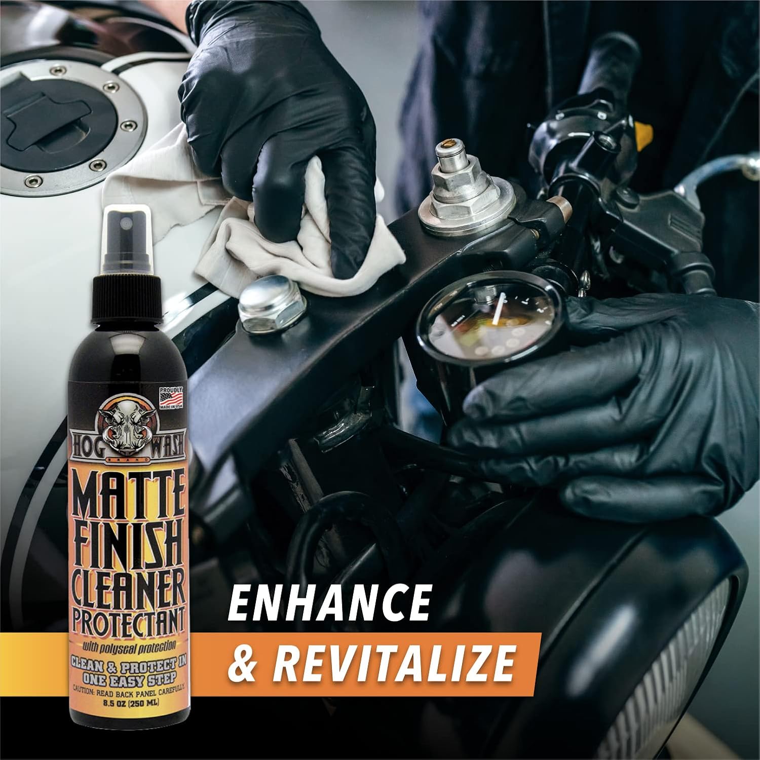 I like to occasionally pamper my bike, but there aren’t too many detailing products for matte finishes. So when I saw this Hog Wash Matte Finish cleaner, I decided to give it a try. The instructions are very clear and the application is easy with the sprayer nozzle. My motorcycle is black, so I can see every little imperfection in its matte paint. After applying the product and wiping it off, it leaves the paint looking clean and streak-free, with a nice deep sheen. This product can even be used on plastic car parts, but I haven’t tried it in that capacity yet. This spray is not cheap, but it doesn’t take a lot to clean my bike, so it may be worth it. Overall, I think it is a good product and would recommend it.
