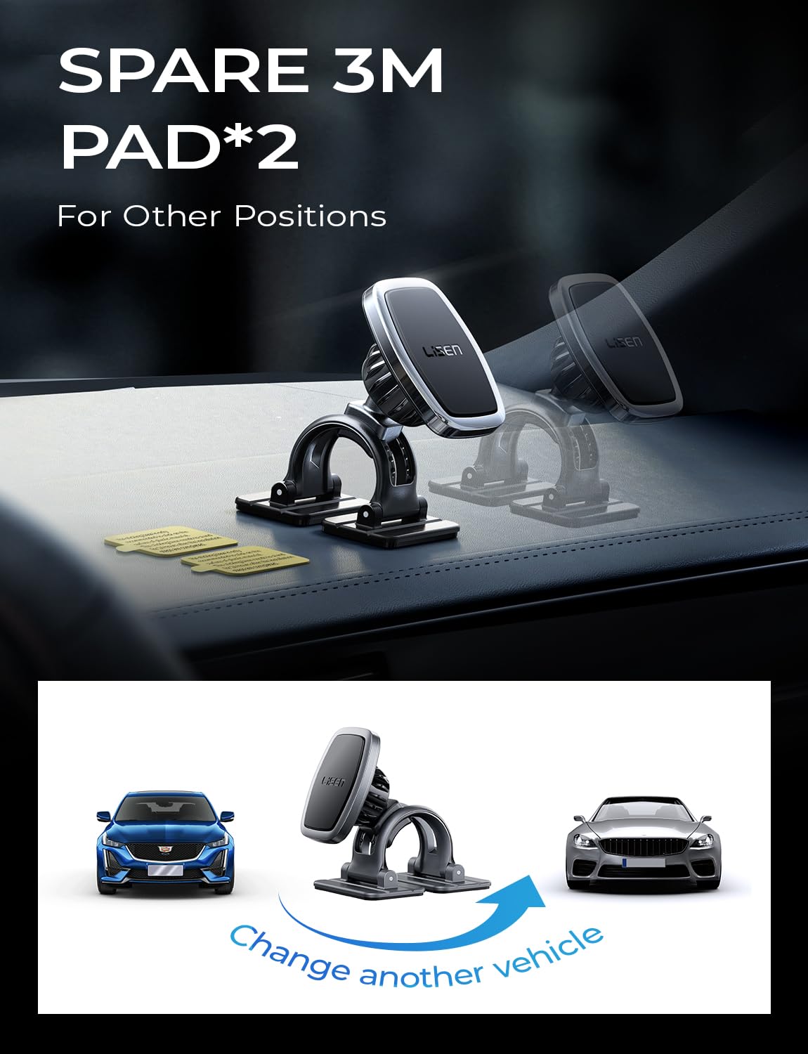 – ALMOFADAS ADESIVAS DUPLAS, ÁREA DE FIXAÇÃO MAIOR: Este suporte magnético adota um design de almofadas adesivas 3M duplas com uma área de fixação pelo menos 200% maior do que os suportes comuns de almofada única. Essa área ampliada se adapta perfeitamente ao painel curvo do carro, melhorando a estabilidade e durabilidade do suporte em 200%. O produto acompanha 2 almofadas adesivas 3M de alta qualidade para substituição.