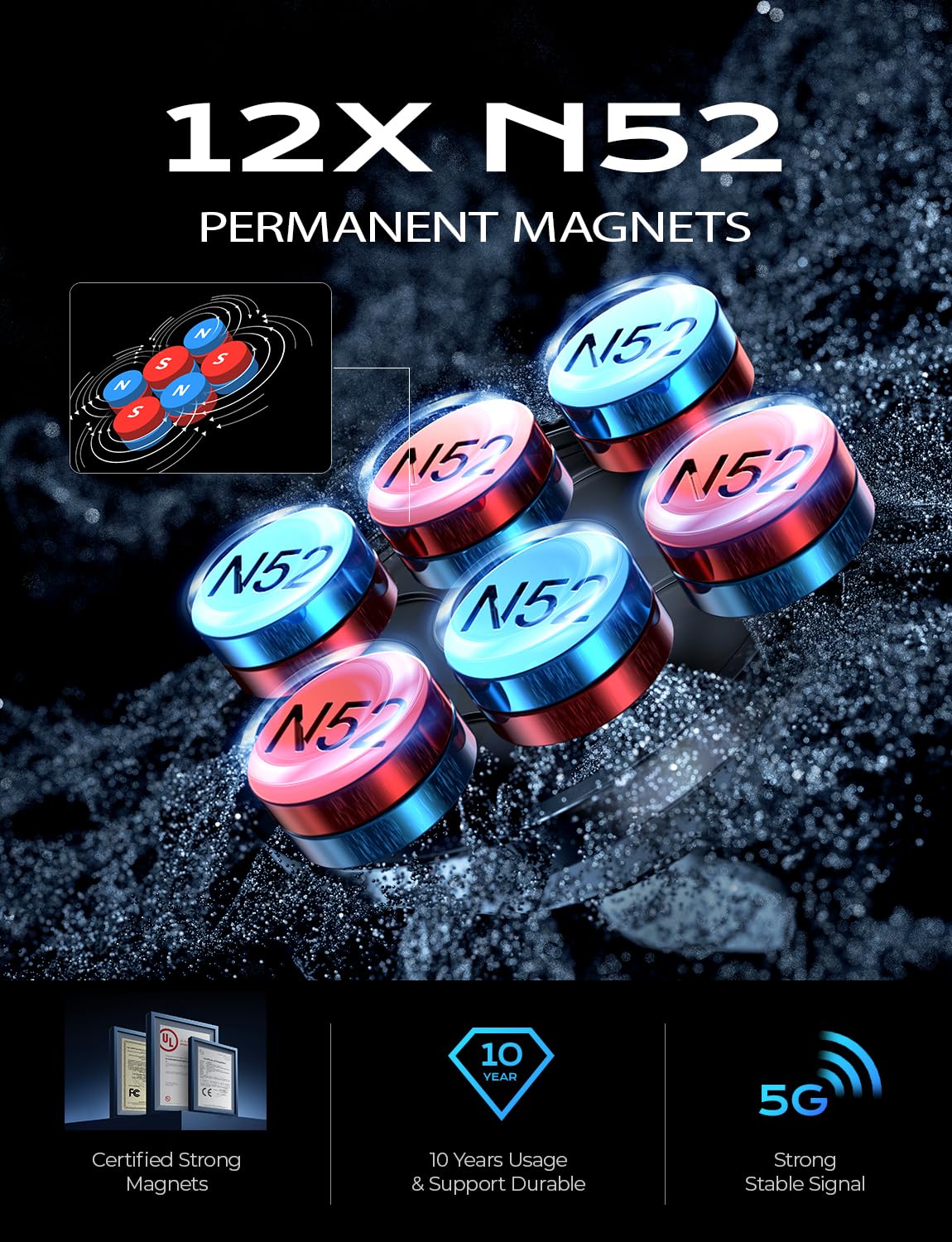 – FORÇA MAGNÉTICA POTENTE COM CAMPO MAGNÉTICO FECHADO: Com 6 ímãs NdFeB dispostos de forma científica, o suporte pode suportar até 3,5 kg (equivalente a 15 iPhones 13). O campo magnético fechado assegura que a força magnética permaneça estável, sem interferir no sinal do dispositivo. Seu smartphone ou tablet permanecerá seguro mesmo em estradas esburacadas.