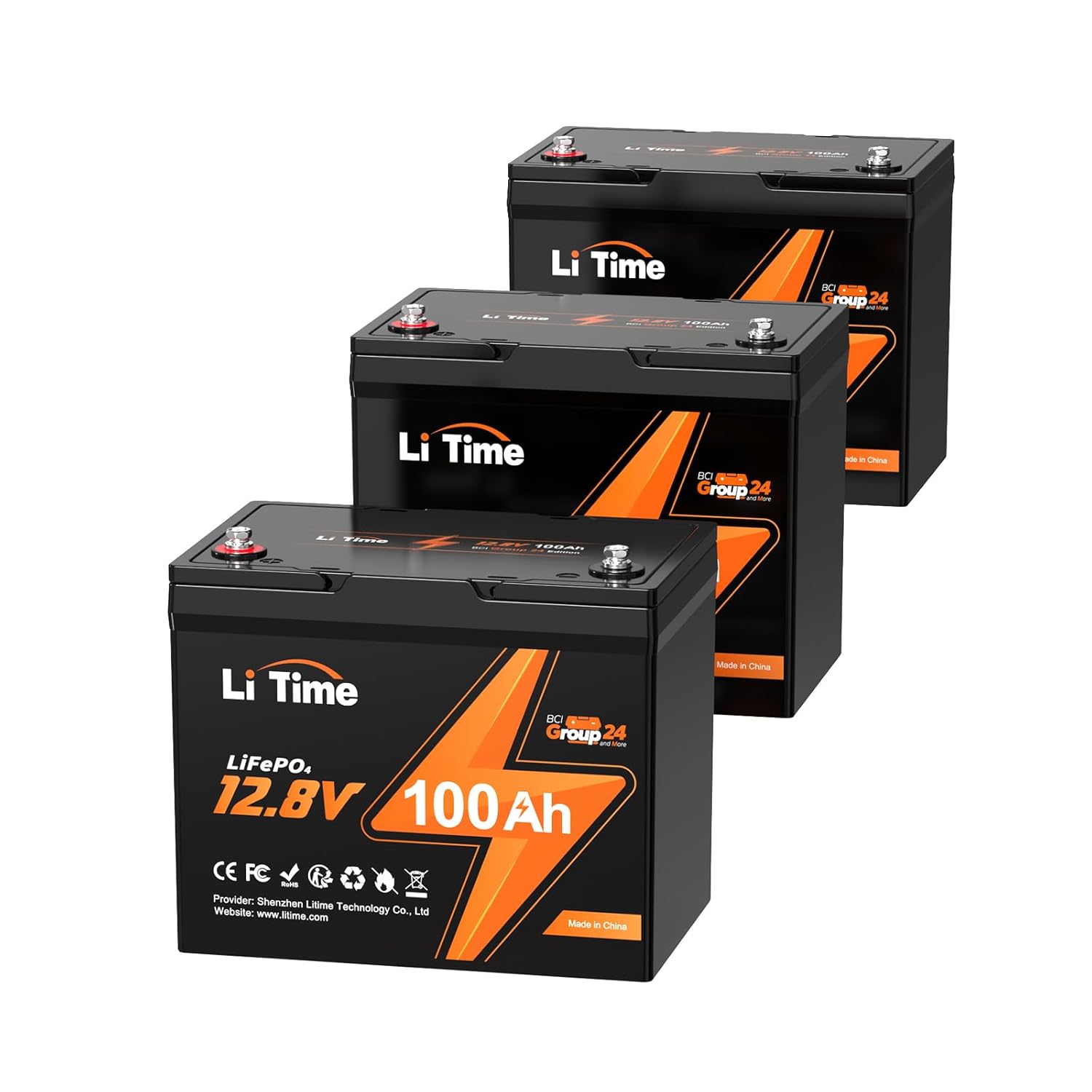 Bateria Lithium LiTime 12V 100Ah – 4 Pacotes, Grupo 24, Bluetooth 5.0, Proteção em Baixa Temperatura, Tamanho Compacto – Ideal para RV, Sistema Solar e Motores de Arrasto