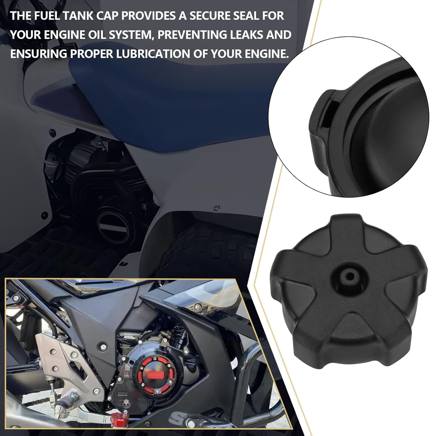 Material: Fabricado em plástico ABS de alta resistência, o LT50 Leakproof Petrol Fuel Tank Cap Lid proporciona um vedação firme e segura, garantindo a contenção adequada do combustível. Este material não apenas resiste ao desgaste, mas também é resistente a impactos, prolongando a vida útil do produto.