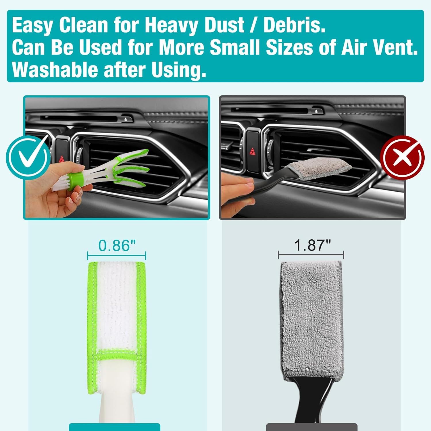 – Green – 2 in 1 Vent Brush: Com um tecido verde e branco que possui forte capacidade de esfregação, esta escova remove efetivamente poeira pesada e poluentes. As cerdas brancas, feitas de material rígido, são perfeitas para limpar partículas e pequenos detritos entre as fendas.