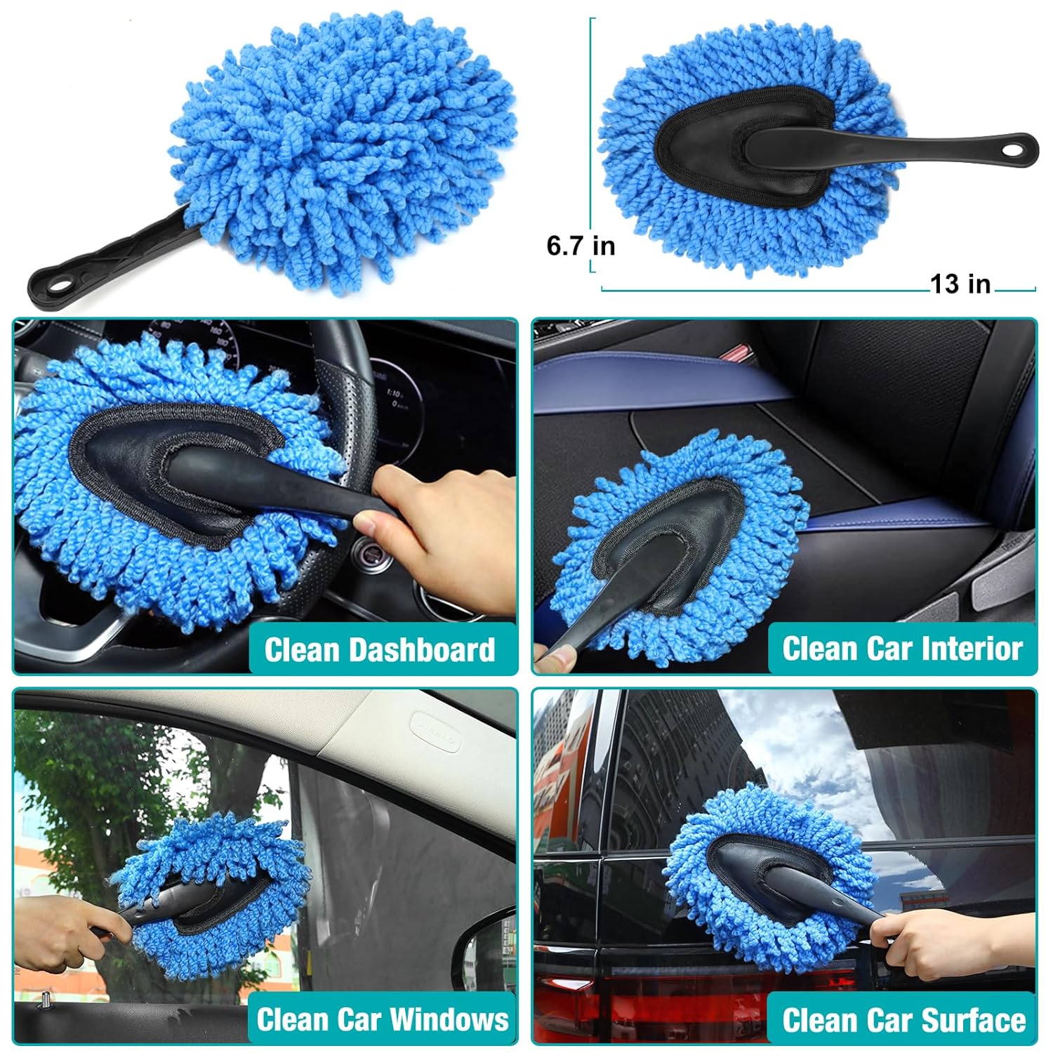 – Blue-Duster Brush: Feita de microfibra macia, esta escova é livre de arranhões e extremamente eficiente para limpar áreas internas, como o painel, janelas, assentos e superfícies do carro. Sua textura suave garante que não haja danos durante a limpeza, proporcionando um acabamento perfeito.