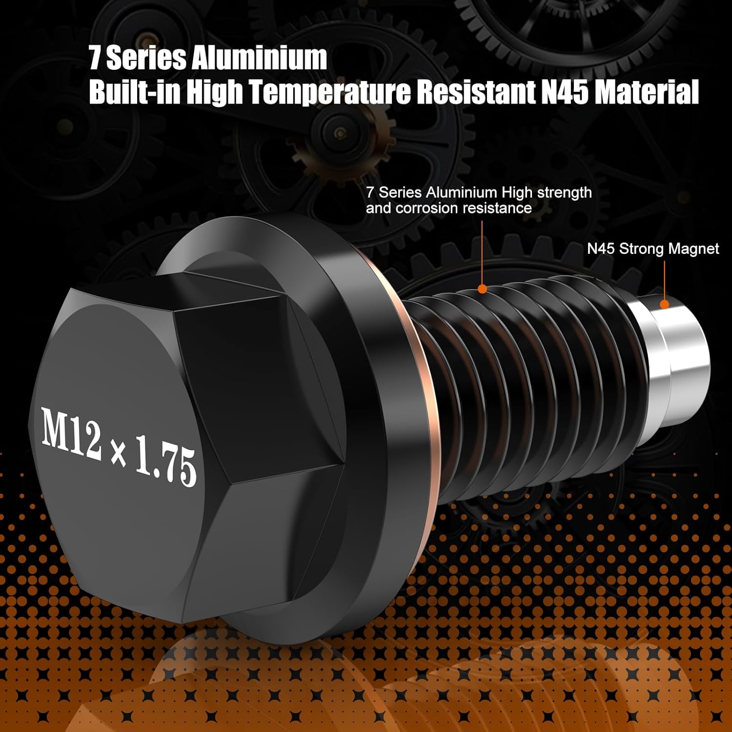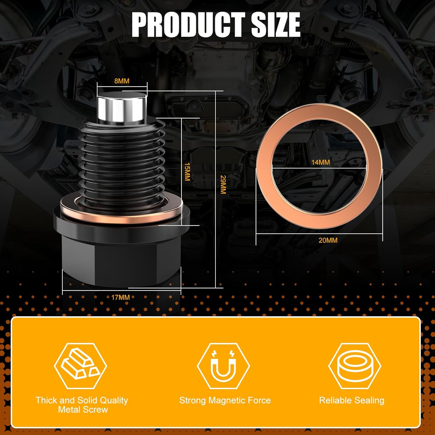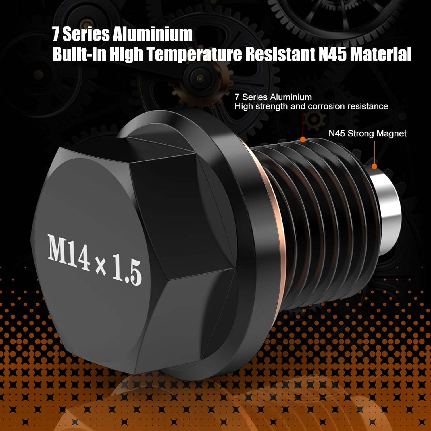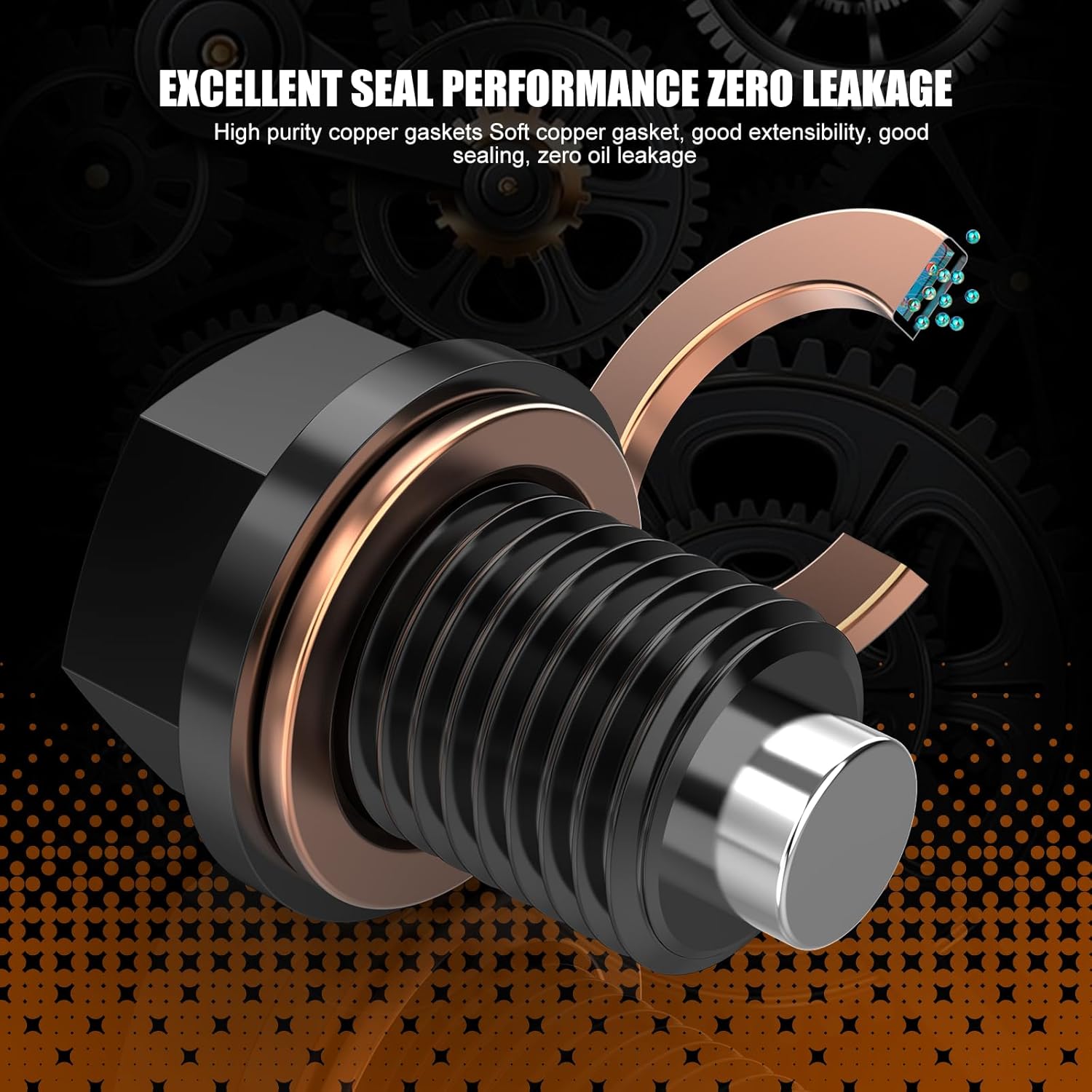 Plugue de Drenagem Magnético de Alumínio M14x1.5 com 1 Jogo de Arruela de Cobre – Substituição para Honda, Acura, Ford, GM, Mazda – Vedação Antivazamento para Cárter de Óleo