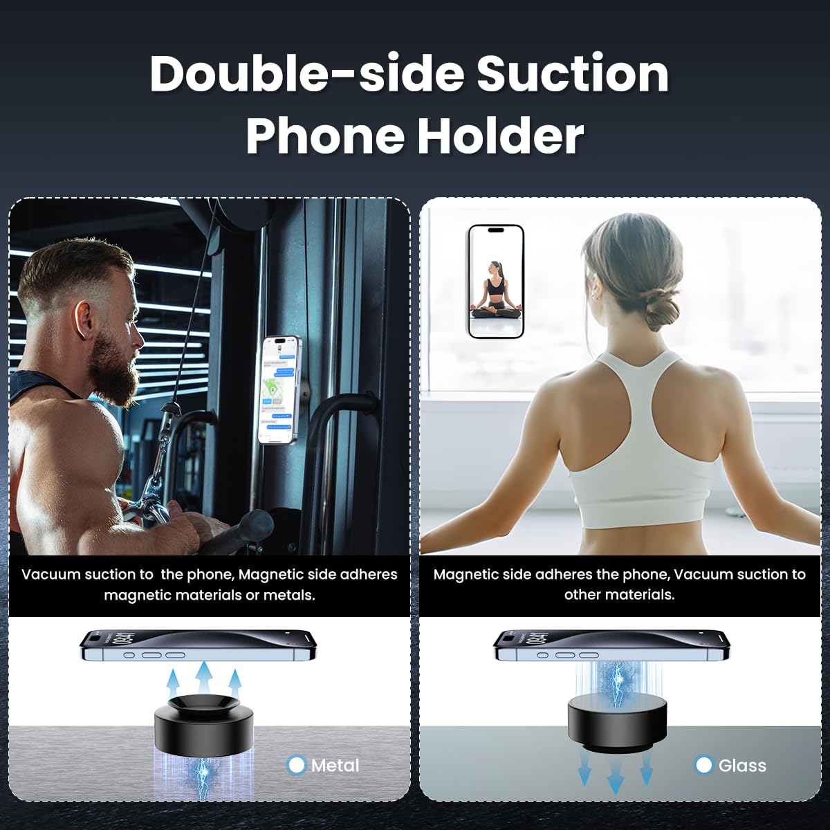 O suporte de sucção é projetado para se adequar à maioria dos smartphones, incluindo iPhone 16/16 Pro, iPhone 15/15 Pro, 14/14 Pro, iPhone 13/13 Pro e iPhone 12/12 Pro. Para outros celulares não magnéticos, é possível utilizar uma capa Mag-safe ou o anel metálico incluído.