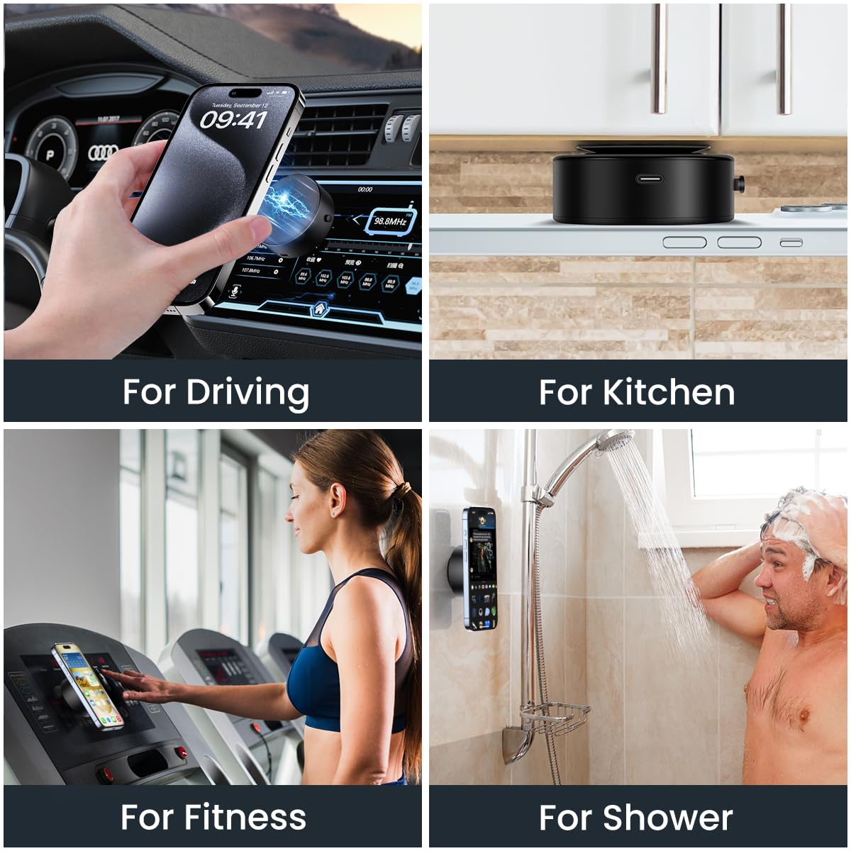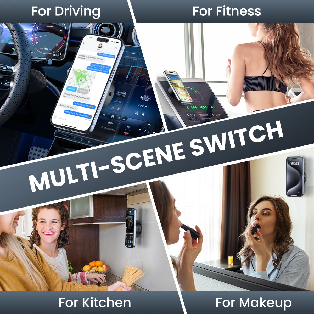 Este suporte magnético é adequado para telas de carros, espelhos, paredes, painéis e outras superfícies lisas. Utilize-o na cozinha, na academia ou até mesmo no banheiro para facilitar seu dia a dia.