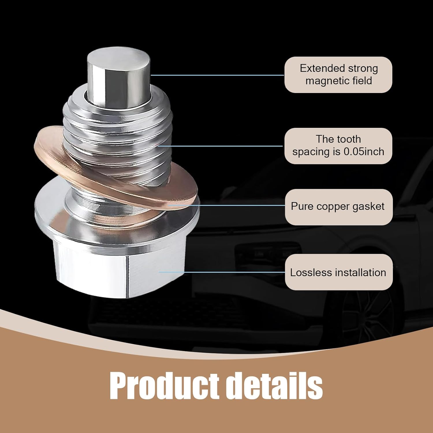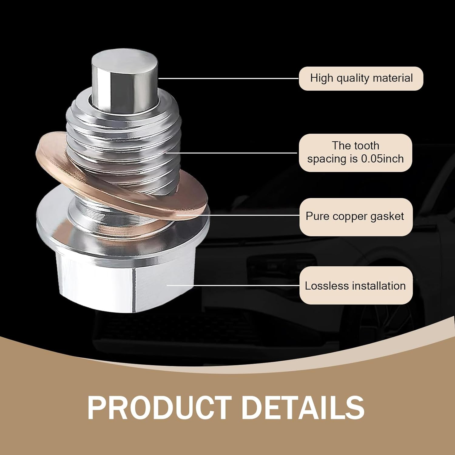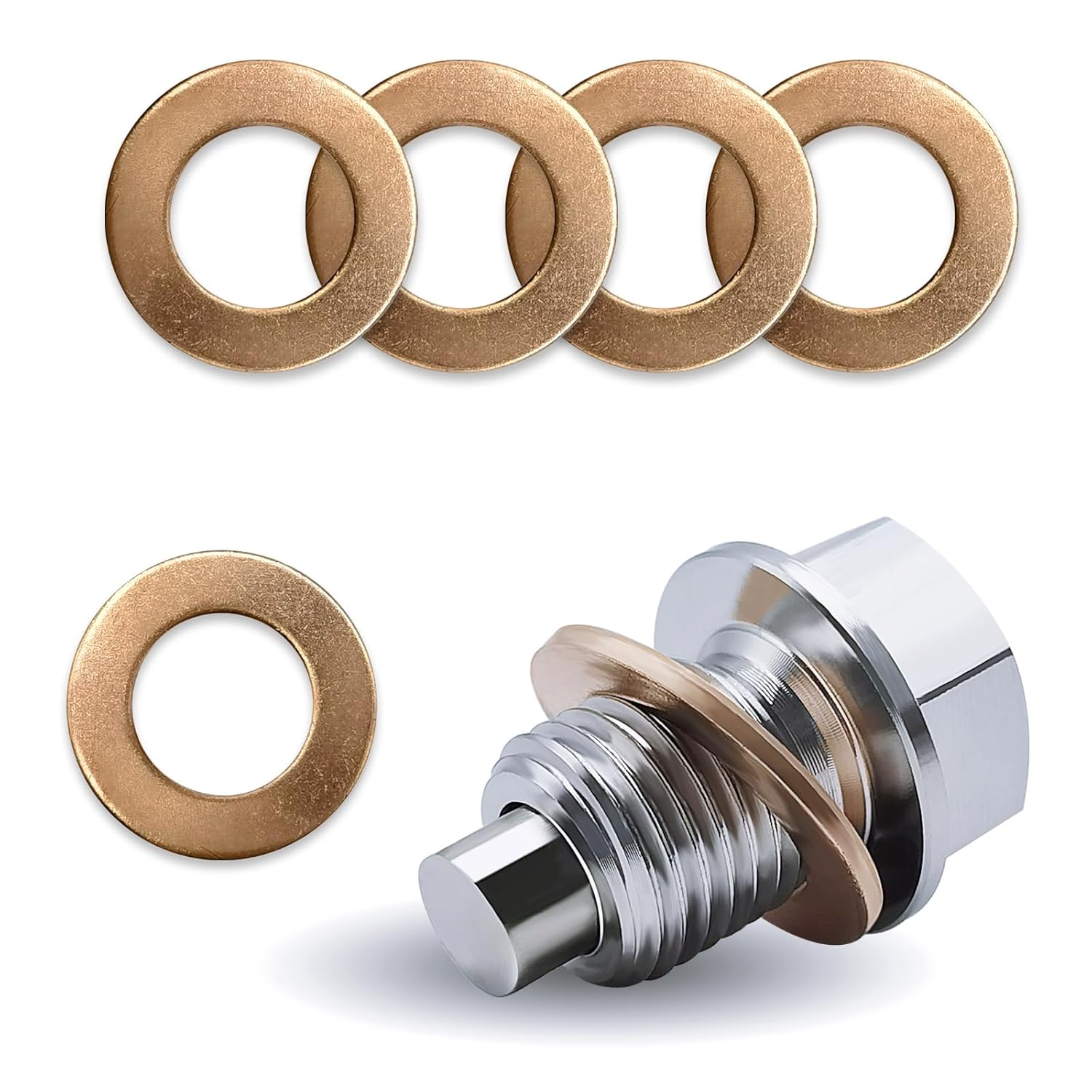 O Magnetic Oil Drain Plug M14x1.5 é a solução definitiva para quem busca um desempenho superior e proteção para o motor do seu veículo. Com um design inovador e materiais de alta qualidade, este plugue de drenagem de óleo em aço inoxidável é equipado com 5 washers de cobre, garantindo uma vedação eficaz e evitando vazamentos indesejados. A sua construção robusta é projetada para suportar a pressão do cárter e a gravidade, assegurando que o óleo do motor permaneça onde deve estar, o que contribui para a longevidade do motor.