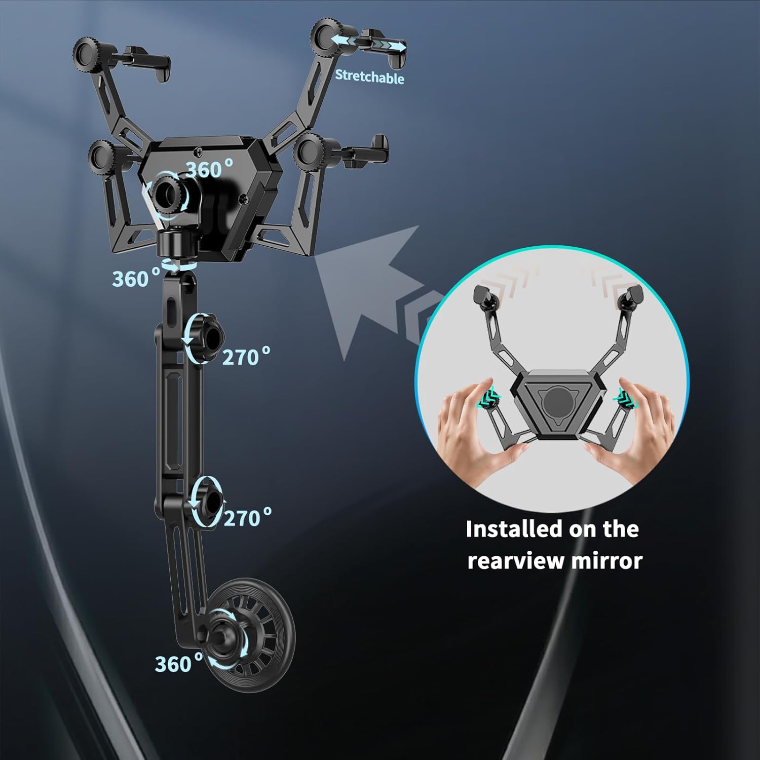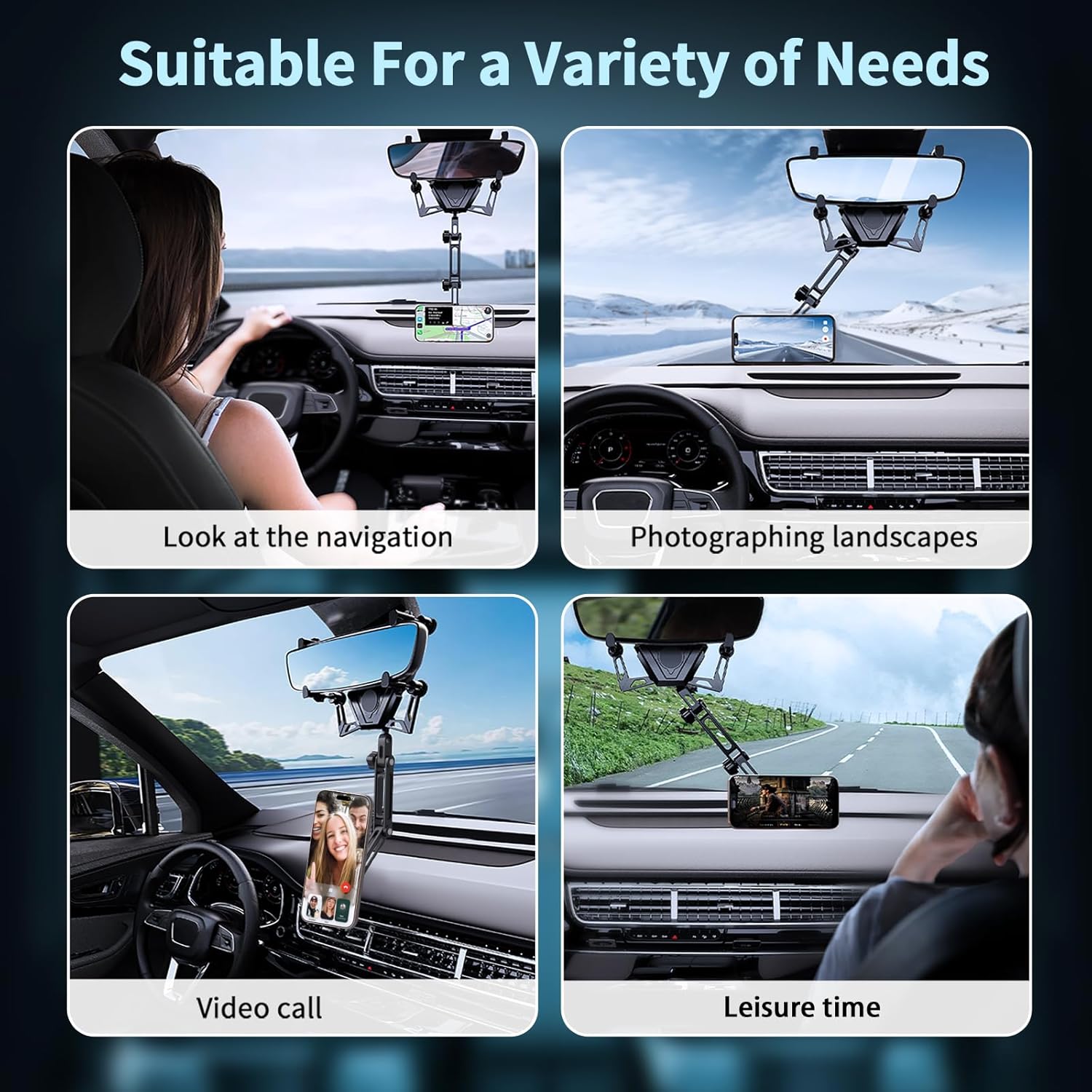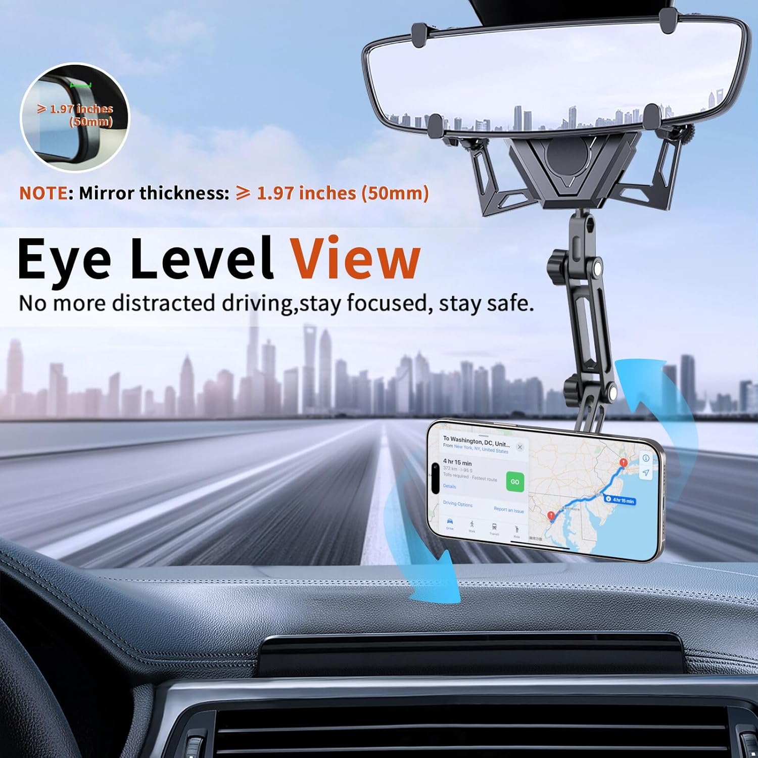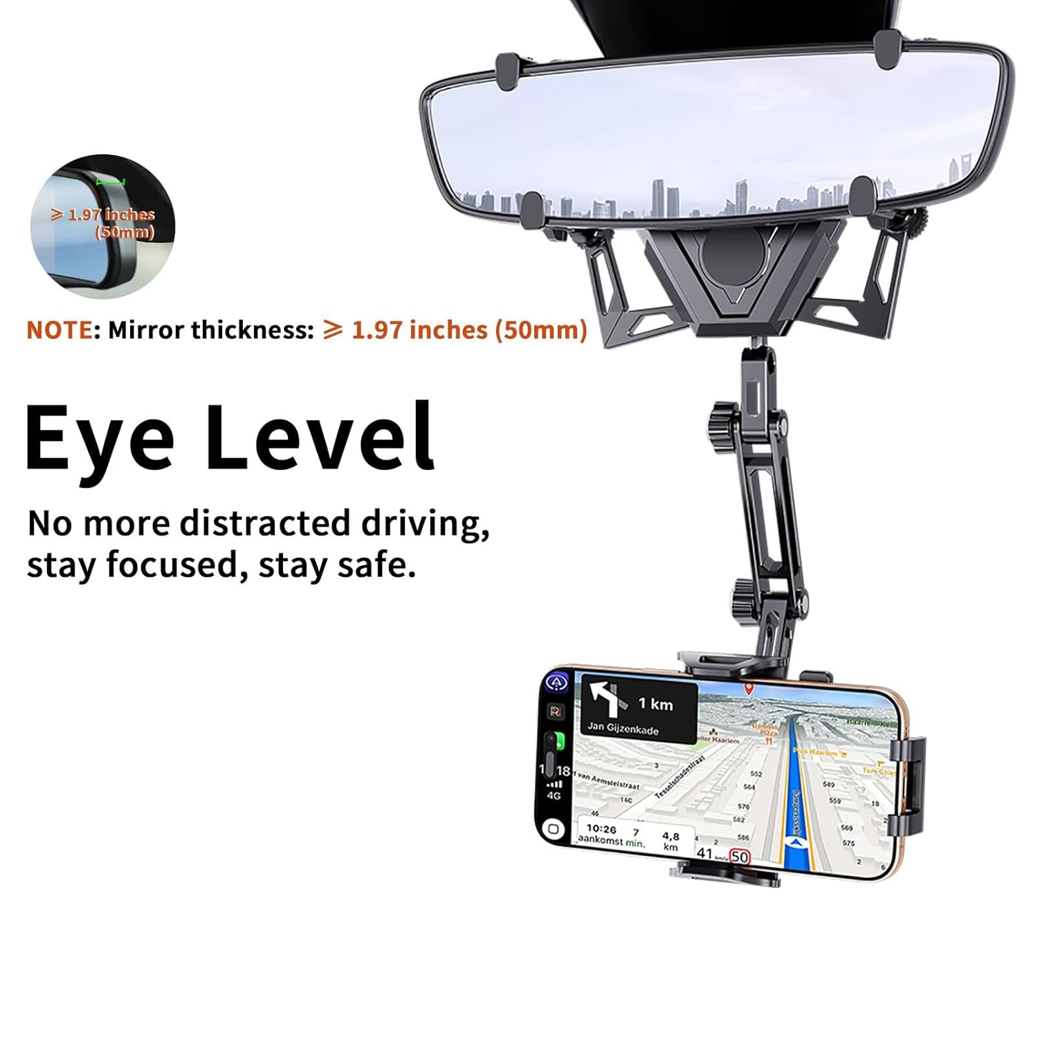 Instalado no espelho retrovisor, o suporte permite ajustes livres para alinhar com o nível de observação dos olhos, garantindo que sua atenção permaneça na estrada. Isso elimina a necessidade de olhar para baixo no celular, reduzindo distrações e aumentando a segurança durante a condução.