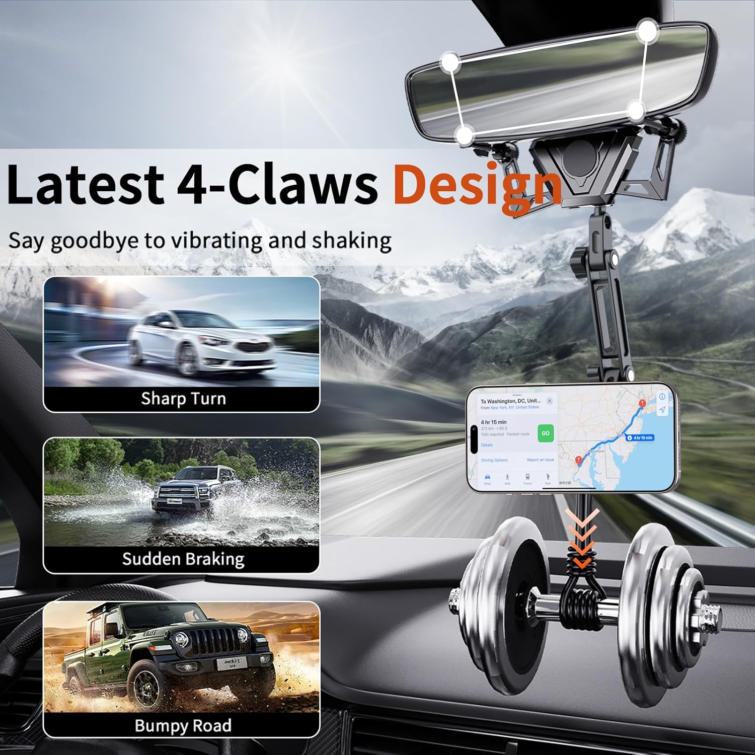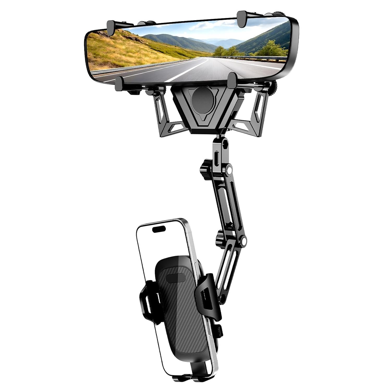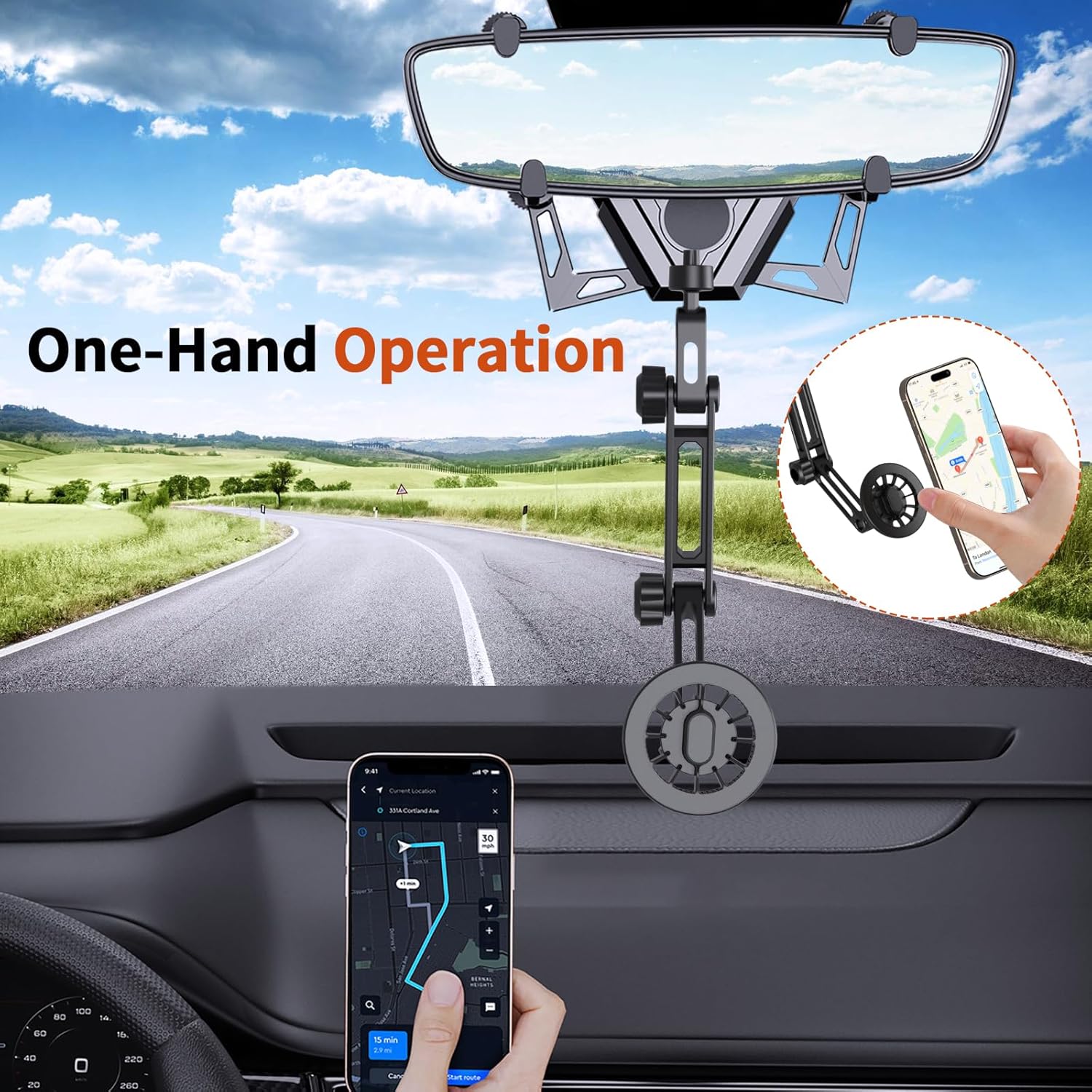 O suporte para celular no retrovisor é fabricado em liga de alumínio, garantindo maior durabilidade e estabilidade. Com um sistema de multi-ajuste, você pode facilmente encontrar o ângulo de visão ideal, tornando a experiência de dirigir mais confortável e segura. O suporte magnético possui uma força magnética impressionante, compatível com iPhones das séries 16, 15, 14, 13 e 12, além de todos os smartphones que utilizam capas MagSafe. Para dispositivos que não possuem essa funcionalidade, um anel metálico é incluído, permitindo que qualquer celular seja fixado de forma segura.