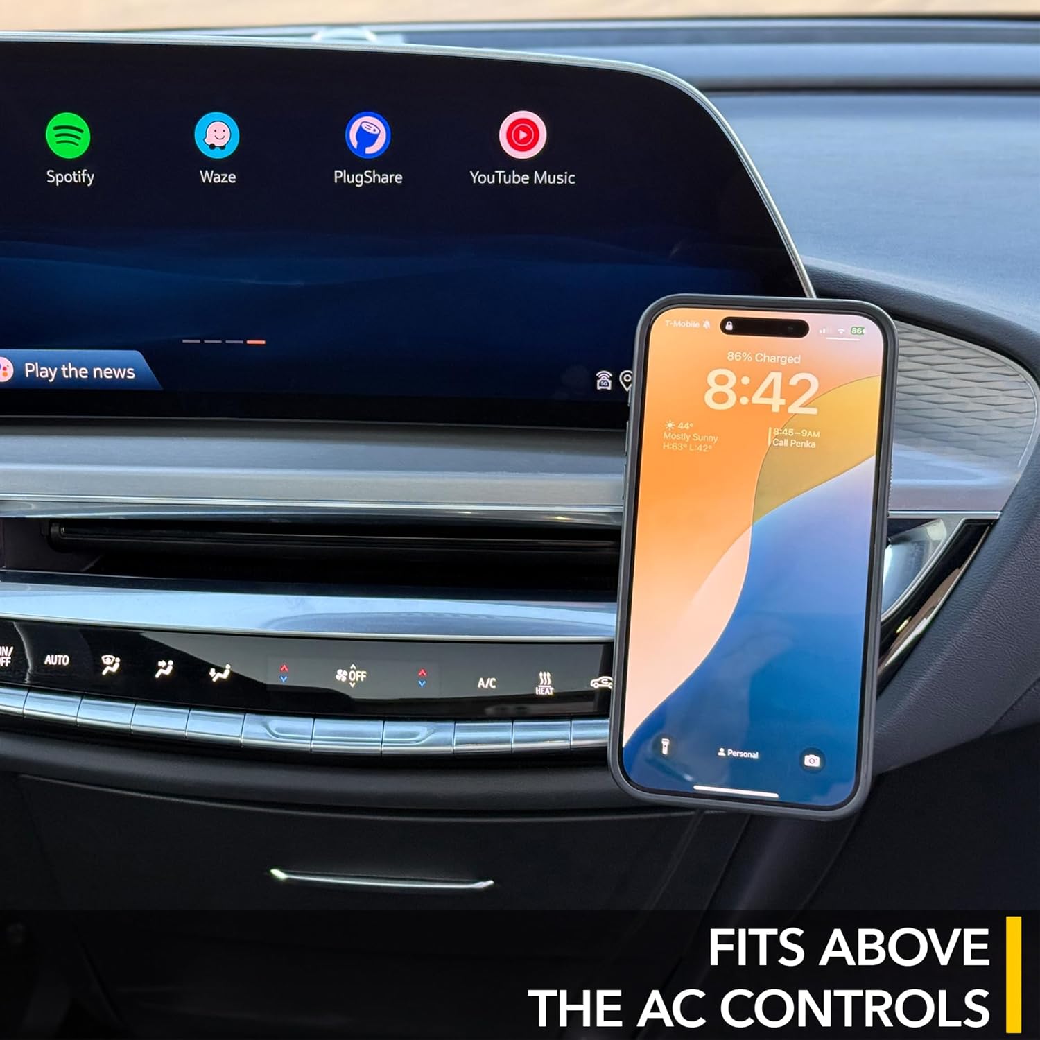 – 📱 Montagem Magnética: O suporte mantém seu iPhone com compatibilidade MagSafe de forma segura, ideal para o Cadillac Lyriq 2024-2025. Ele se conecta às aberturas de ar existentes, sem necessidade de adesivos, permitindo uma instalação e remoção fáceis.