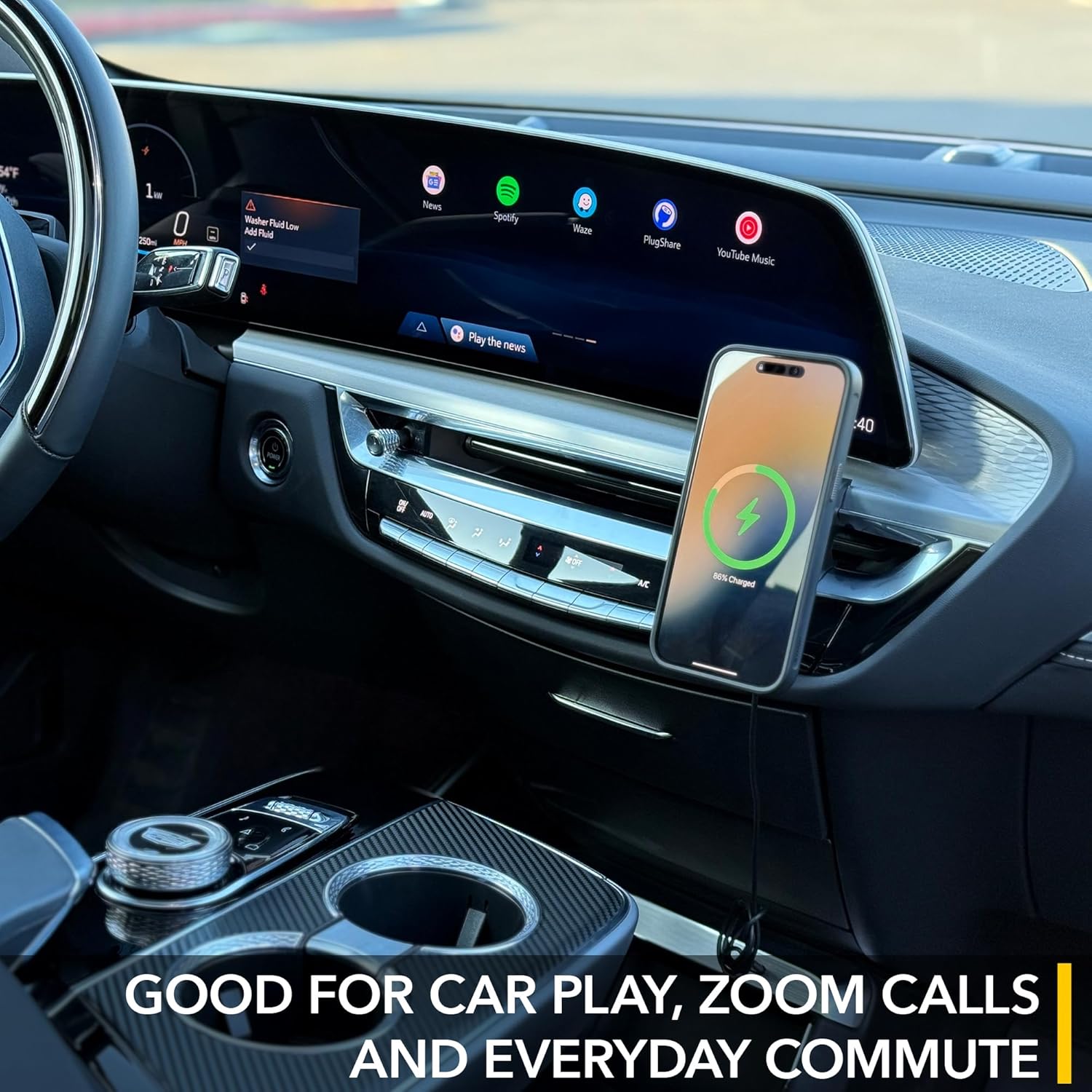 Descubra a praticidade e a inovação do Suporte Magnético para Celular, projetado especialmente para o Cadillac Lyriq 2024-2025. Este suporte de painel é compatível com capas MagSafe para iPhone e Android, oferecendo uma solução de montagem que não requer cola ou parafusos, garantindo uma instalação e remoção simples e rápida. Com ele, você pode realizar chamadas via Zoom e FaceTime sem obstruir a visão da estrada, proporcionando uma experiência de condução segura e conectada.