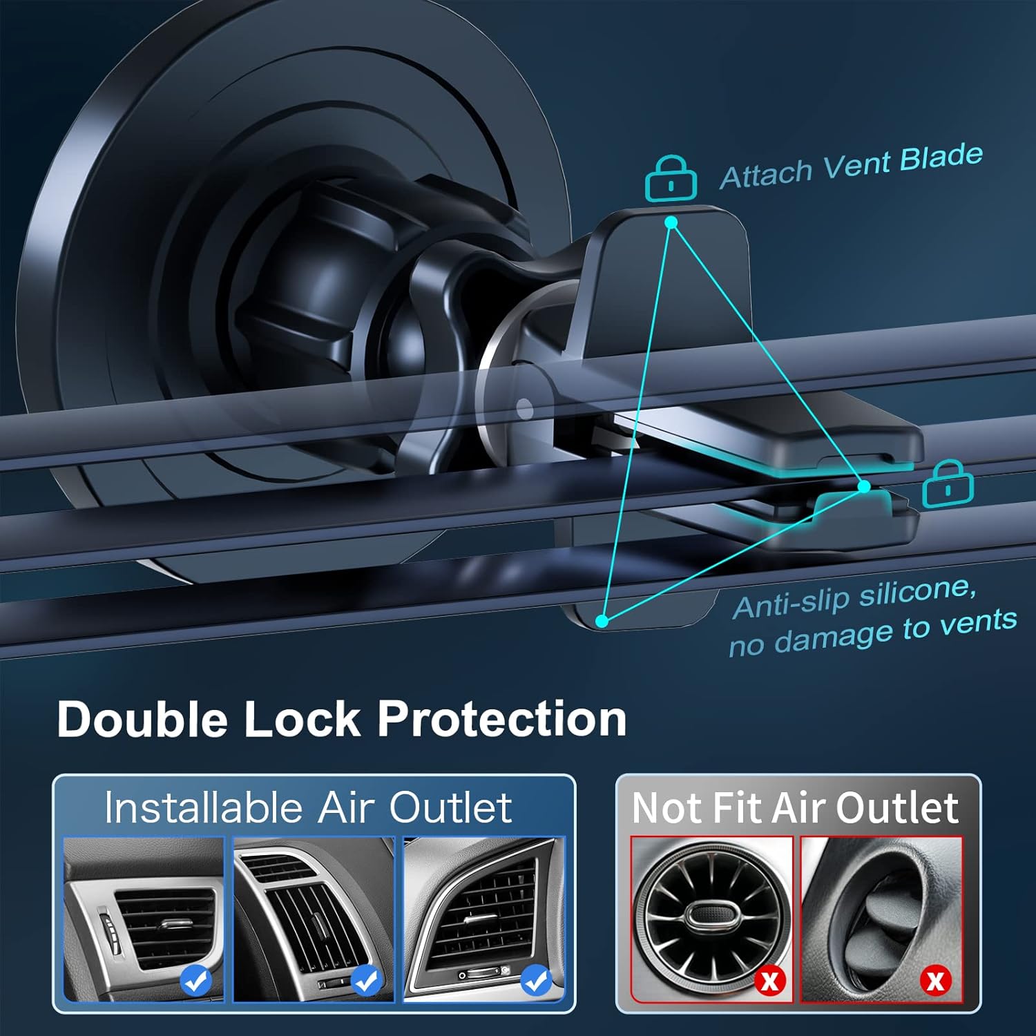 𝙏𝙝𝙚 𝘽𝙚𝙨𝙩 𝙂𝙞𝙛𝙩 【2024 Upgraded】20 Strongest Magnets MagSafe Car Mount for iPhone 16/15/14 /13 /12 Series Directly, Universal Cell Phone Holder Car MagSafe (Metal Ring Included) Fits for All Mobile Phones & Cases, Real Hand-Free Operation, 360°Adjustable Magnetic Phone Mount for Car, Magnetic Phone Holder for Car Air Vent, Cute Size-Never Block View/Airflow/Signal, Super Stable & Protect Your Car Vent