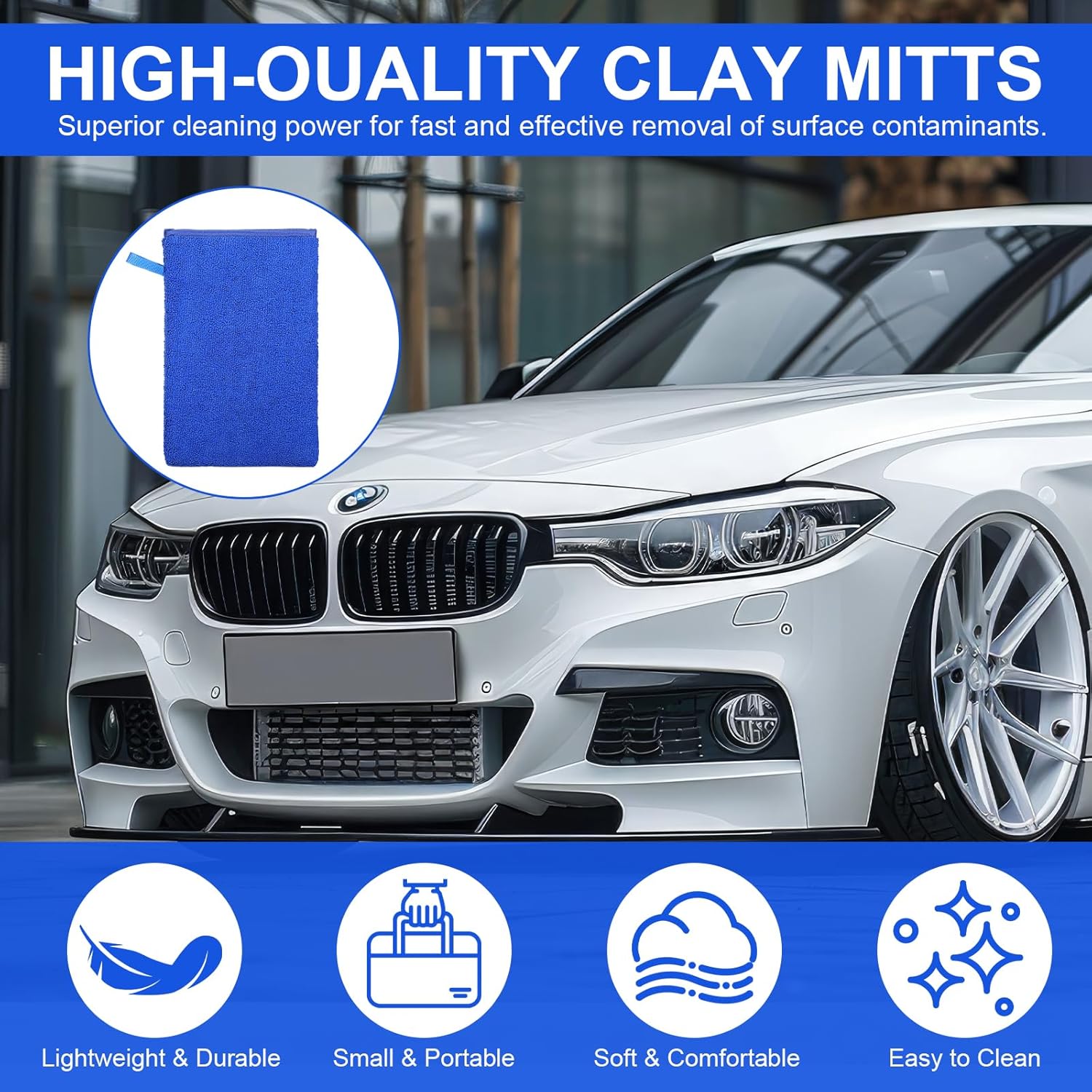 – Grande Área de Limpeza: O pacote inclui 2 luvas de argila azuis e 2 toalhas de argila. A grande área das luvas permite uma limpeza rápida do corpo do carro, economizando tempo e esforço.