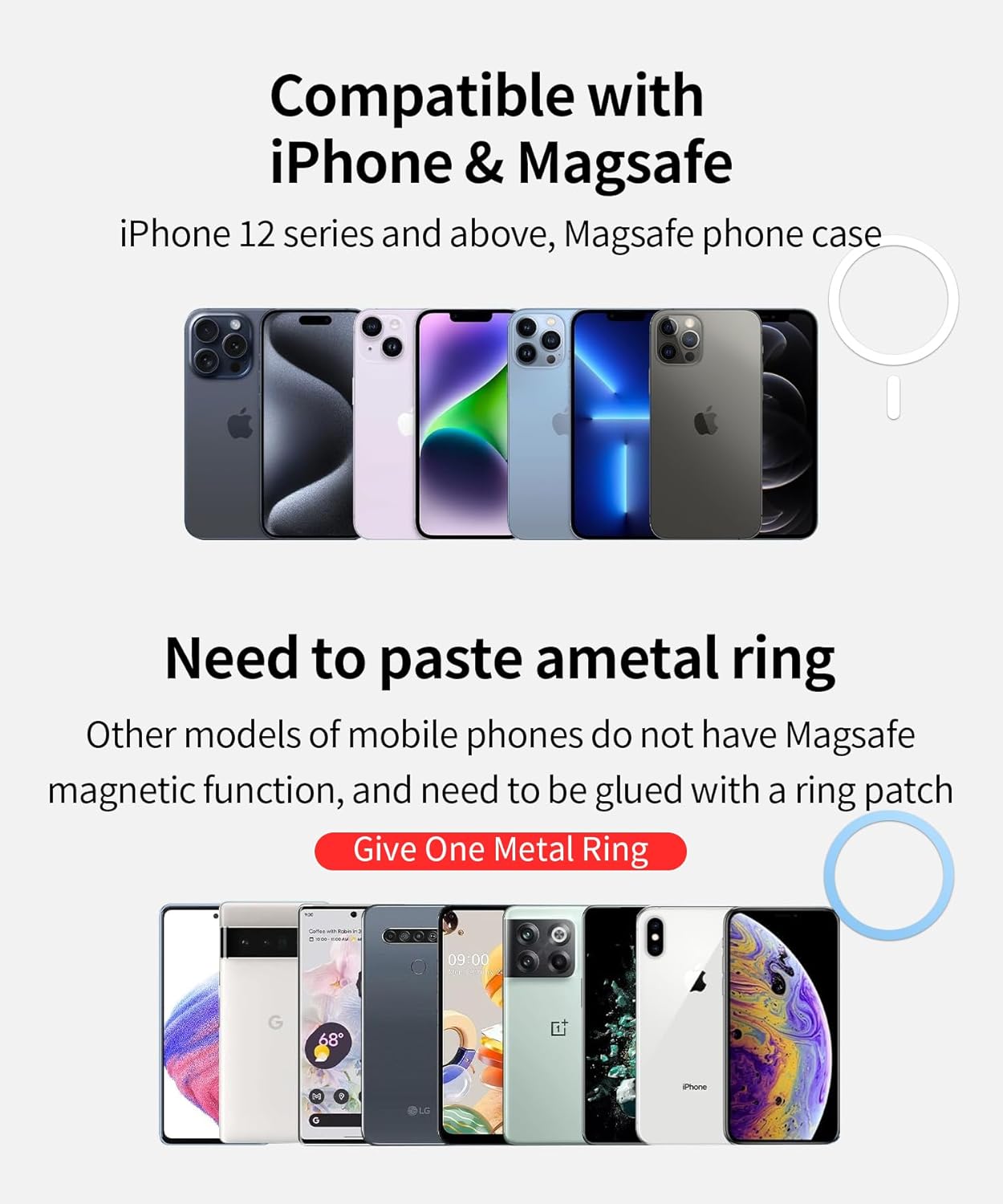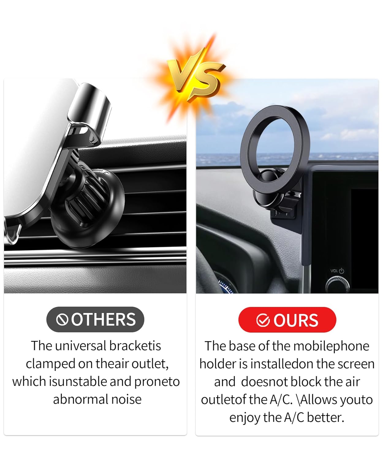 A instalação do MaserWeller é rápida e não destrutiva, permitindo que você o monte em segundos sem causar danos ao interior do seu carro. Além disso, a estrutura em alumínio preto de alta qualidade e os 20 potentes ímãs N55 garantem uma fixação super forte, compatível com a tecnologia MagSafe, que mantém seu smartphone no lugar, mesmo em situações de movimento intenso.