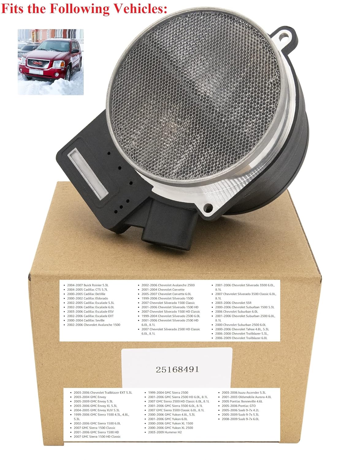 Com o tempo, o sensor MAF original pode falhar ou acumular sujeira e óleo, resultando em problemas de funcionamento do veículo e acendendo a luz de verificação do motor (Check Engine Light – CEL). O Sensor de Fluxo de Ar de Massa 25168491 é projetado para resolver esses problemas, permitindo que o motor opere de maneira eficiente e suave. É compatível com uma ampla gama de veículos GM, incluindo: