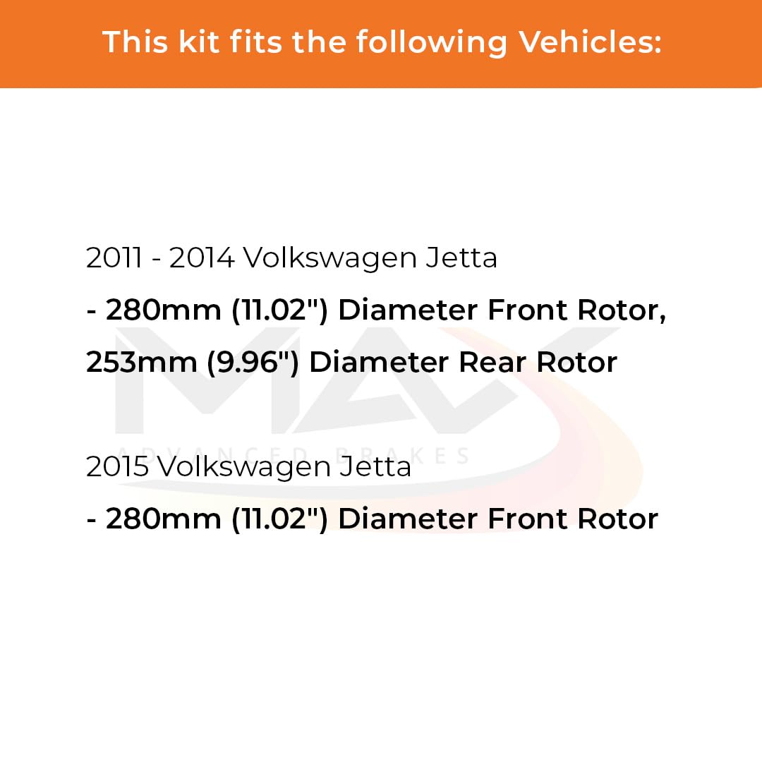 Compatibilidade Precisa com Veículos: Este kit de pastilhas e discos de freio é compatível com os modelos Volkswagen Jetta de 2011 a 2015, com disco dianteiro de 11,02″ e disco traseiro de 9,96″, garantindo um ajuste perfeito e desempenho otimizado.