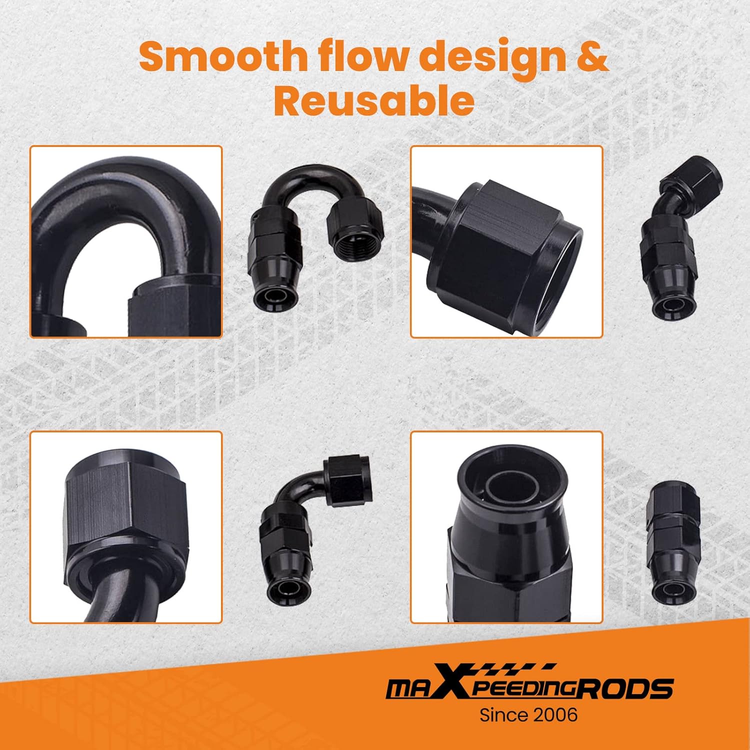 O Kit de Mangueiras de Combustível maXpeedingrods 6AN PTFE é a solução ideal para quem busca eficiência e durabilidade em sistemas de combustível e fluidos. Com 20 pés de mangueira de nylon trançado e 10 conexões, este kit é projetado para atender a uma variedade de aplicações, incluindo linhas de resfriamento de transmissão, linhas de resfriamento de turbo, linhas de retorno de combustível, linhas de abastecimento de combustível, mangueiras de fluido de arrefecimento, linhas de medidores de combustível, linhas de vácuo e linhas de alimentação de óleo.