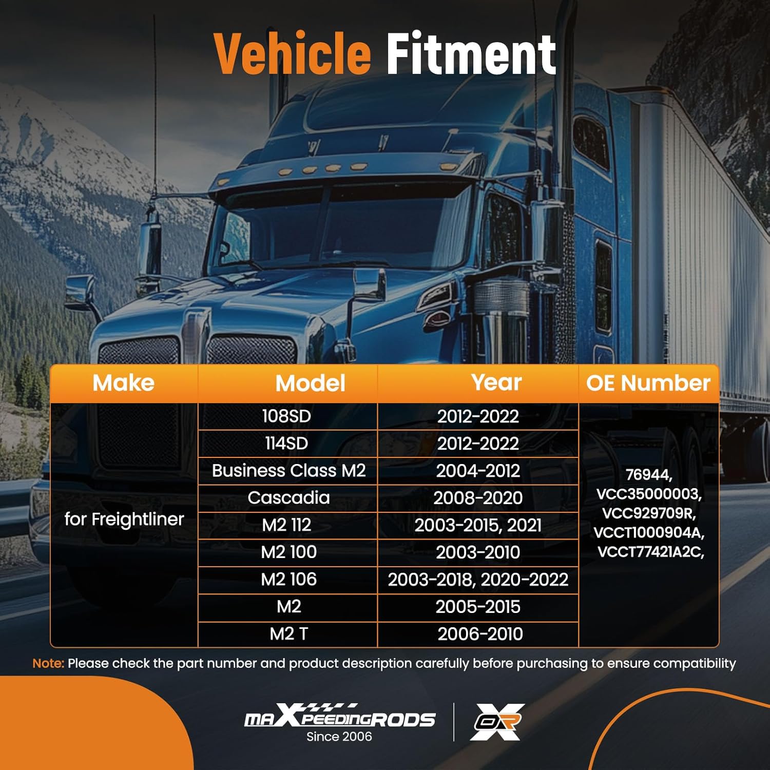 – Compatibilidade: Freightliner 108SD (2012-2022), 114SD (2012-2022), Business Class M2 (2004-2012), Cascadia (2008-2020), M2 100 (2003-2010), M2 106 (2003-2018, 2020-2022), M2 112 (2003-2015, 2021), M2 (2005-2015, 2006-2010).