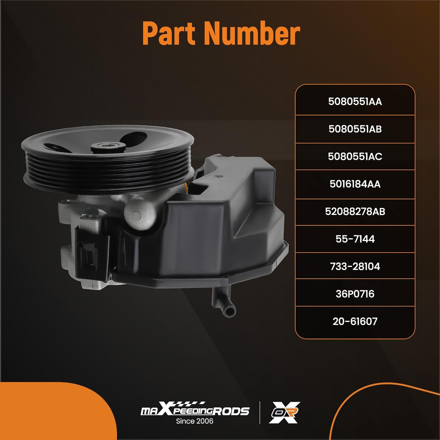 A Bomba de Direção Hidráulica maXpeedingrods é a solução ideal para quem busca desempenho e confiabilidade em seu Jeep Grand Cherokee, modelo Sport Utility 4.0L L6 (1999-2004) e 4.7L V8 (1999-2000). Com um design robusto e materiais de alta qualidade, esta bomba é projetada para substituir diretamente as peças originais com números de peça 5080551AA, 5080551AB, 5080551AC, 5016184AA, 52088278AB, 55-7144, 733-28104, 36P0716 e 20-61607.