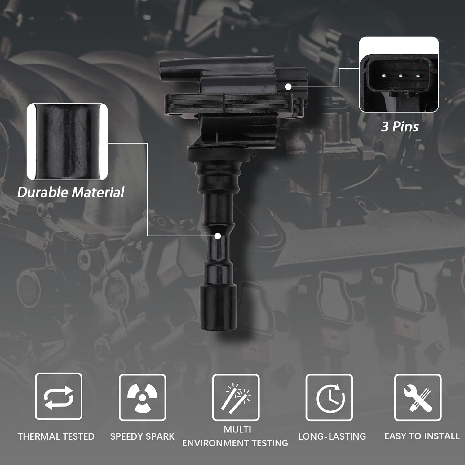 Descrição do Produto: MAYASAF UF432 Ignition Coils 3 Pack 6 Spark Plugs Kit