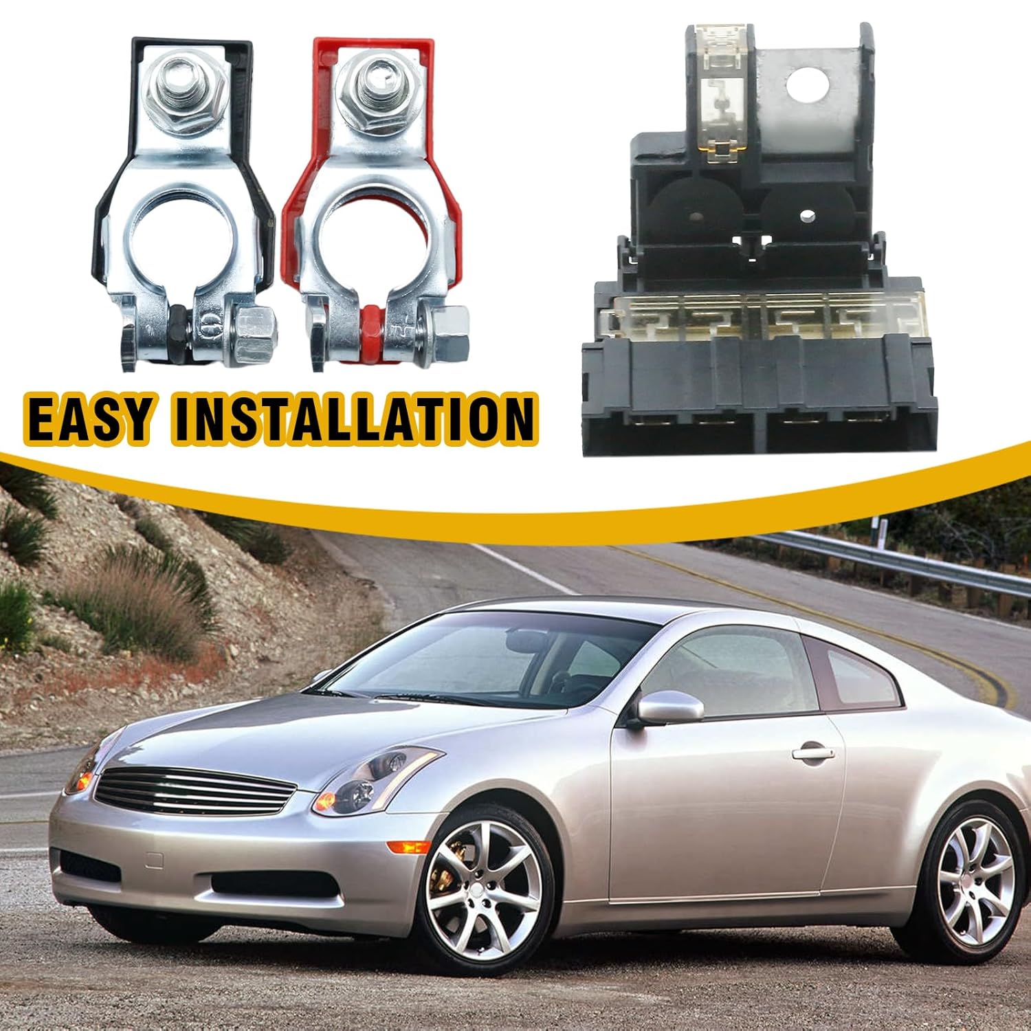 O MDEOOSKY 2438079913 é um fusível de bateria de alta qualidade, projetado especificamente para veículos Infiniti G35 (2003-2007), FX35 (2003-2008) e FX45 (2003-2008), além de ser uma excelente opção de substituição para o 350Z (2003-2009) e NV200 (2013-2022). Este componente essencial, que substitui os números de peça 24340-7F000, 24380-79913 e 2438079913, é fundamental para garantir o funcionamento adequado do sistema elétrico do seu veículo.