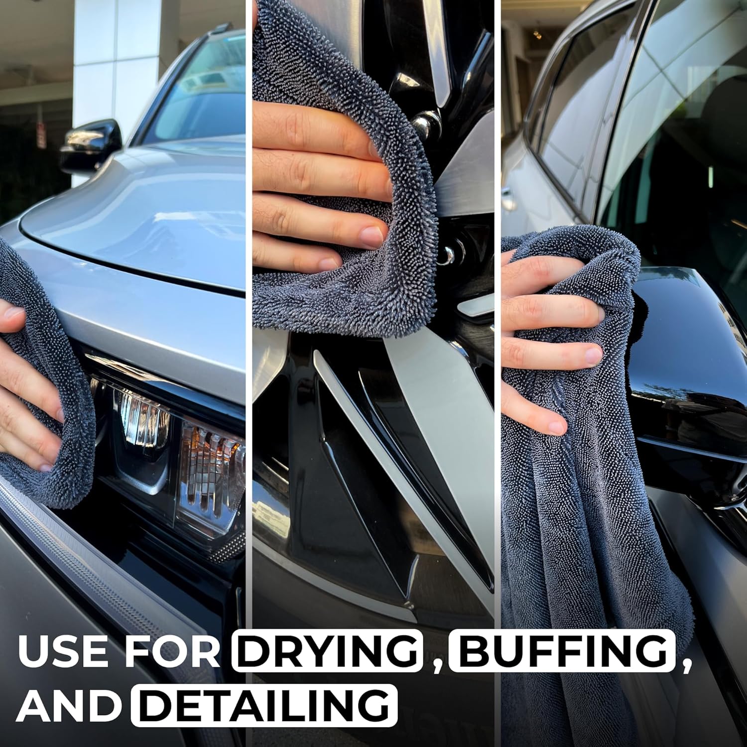 I’m genuinely impressed with these microfiber towels! They dry my car so efficiently, leaving no streaks or water spots behind. The double twisted loop design makes it super absorbent, and it picks up every drop in just one pass. I have a dark-colored car, and this towel worked perfectly, saving me time and effort. The quality feels premium, and it’s so soft that I don’t worry about scratches on the paint. Highly recommend this for anyone serious about car detailing!