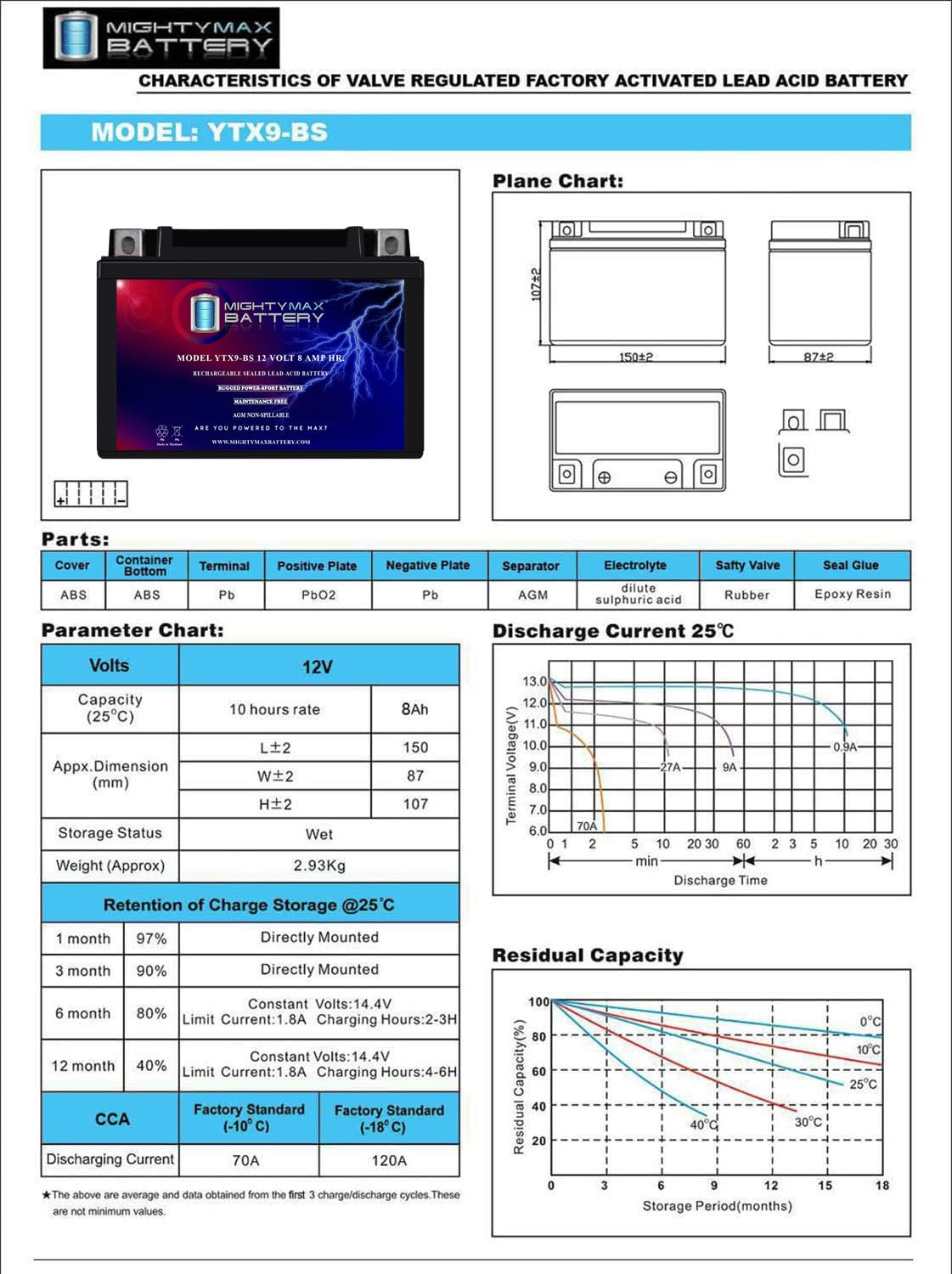 A Bateria Mighty Max YTX9-BS se destaca no mercado por sua durabilidade e confiabilidade, sendo uma escolha preferida entre motociclistas e proprietários de ATVs.