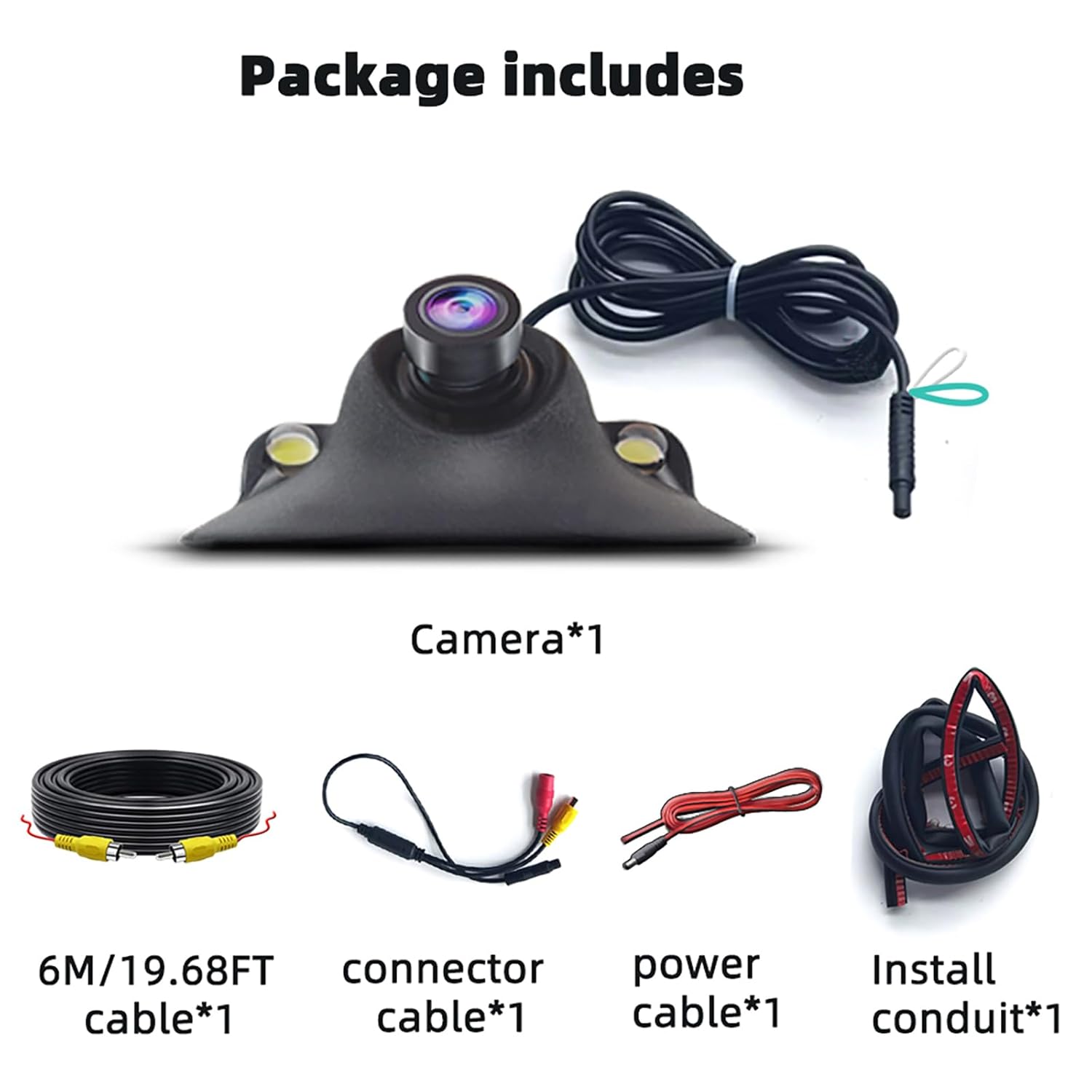 ### Câmera Mini Lateral/Traseira/Dianteira para Carro com Lente Rotativa