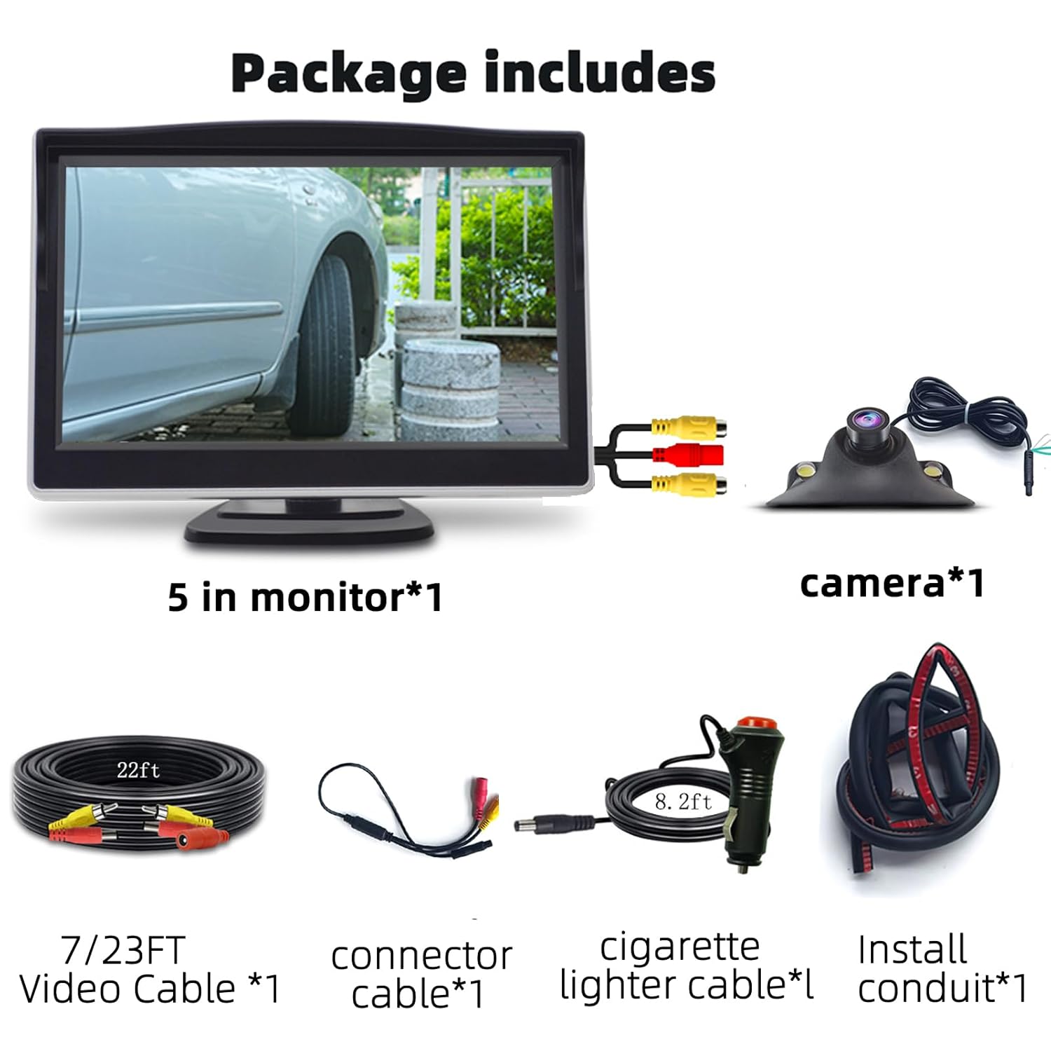 2. Conexão: Conecte o cabo de vídeo de 19,68 pés ao monitor e o cabo de alimentação à fonte de energia do veículo.