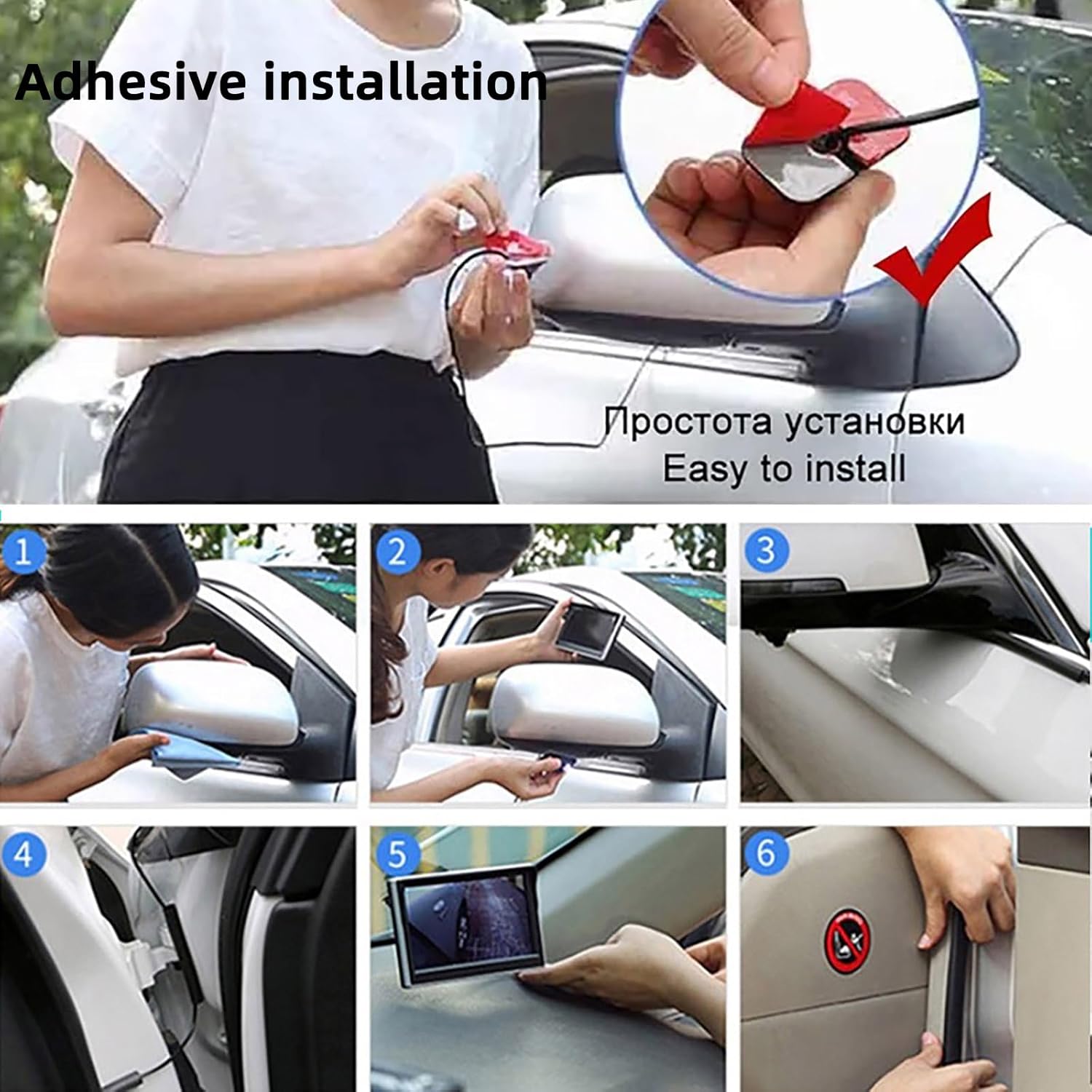 A instalação da câmera é simples e geralmente é feita no lado direito do carro, permitindo que você observe os pontos cegos. Através do cabo de conexão, é possível controlar a imagem, que pode ser invertida para facilitar a visualização, além de exibir linhas de estacionamento, se desejado. O material de borracha macia utilizado na fabricação da câmera garante que ela se fixe de forma segura em superfícies curvas, enquanto a lente pode ser ajustada em várias direções: esquerda, direita, para cima e para baixo.