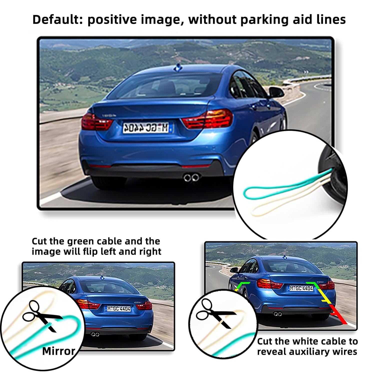 4. Configuração da Imagem: Utilize o cabo de conexão para inverter a imagem, se necessário, e ative as linhas de estacionamento, se disponível no seu monitor.