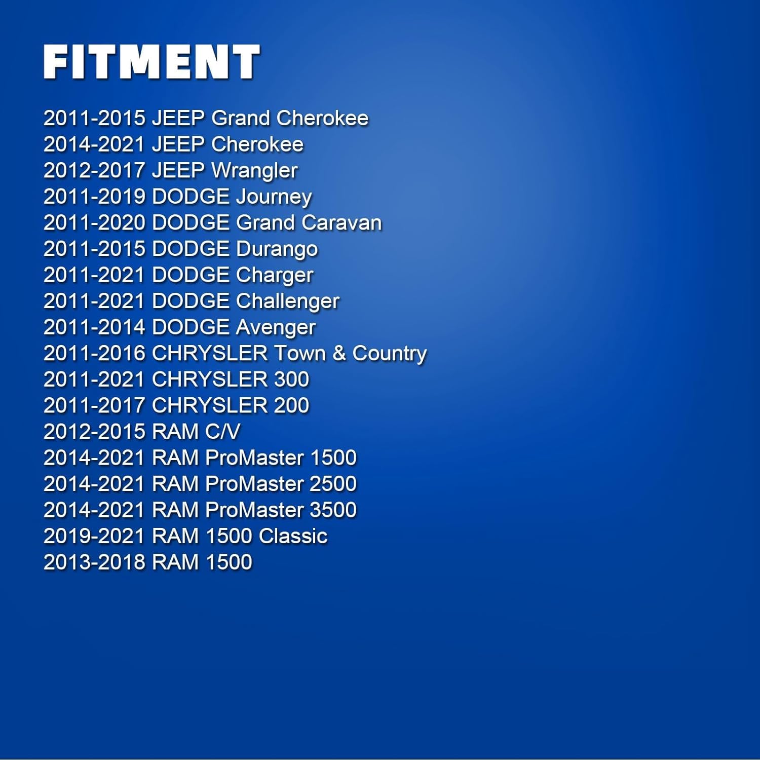 • FITMENT 1: Compatível com o motor V6 Pentastar de 3.6L da Dodge Jeep, incluindo os modelos 2011-2015 Grand Cherokee, 2014-2021 Cherokee, 2012-2017 Wrangler, 2011-2019 Journey, 2011-2020 Grand Caravan, 2011-2015 Durango, 2011-2021 Charger, 2011-2021 Challenger e 2011-2014 Avenger.