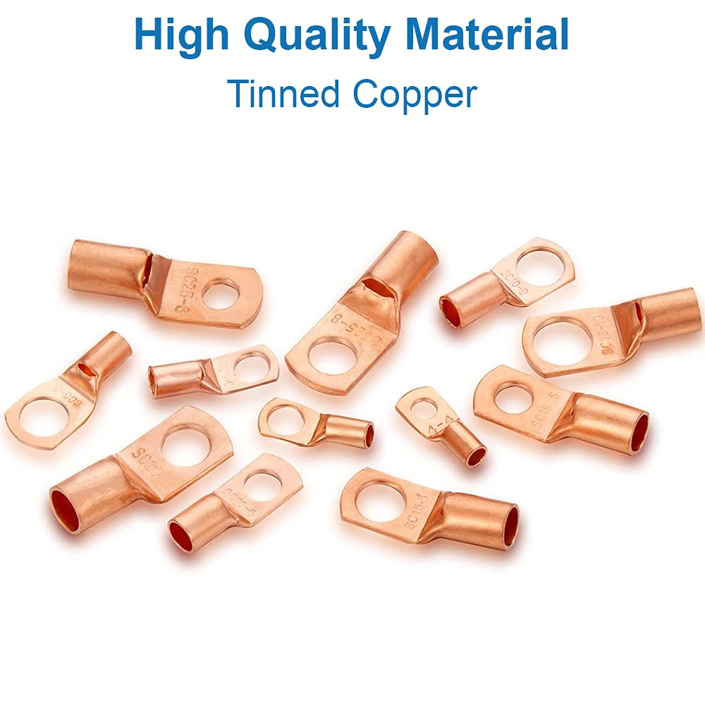 77 avaliações para Conjunto de Terminais de Cobre para Cabos de Bateria MMOBIEL – 170 Peças, Conectores de Anel AWG4, AWG6, AWG8, AWG10, AWG12, Lugs de Cobre Pesado