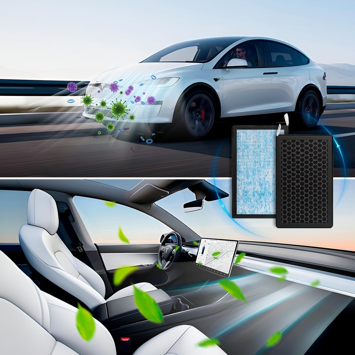 - Substituição: Este filtro de ar da cabine é perfeito para uso com os modelos Tesla 3 e Y (2016-2023). Ele se encaixa perfeitamente e pode ser instalado facilmente, sem danificar seu veículo. Aumenta a eficiência do sistema de filtragem de ar do seu carro.