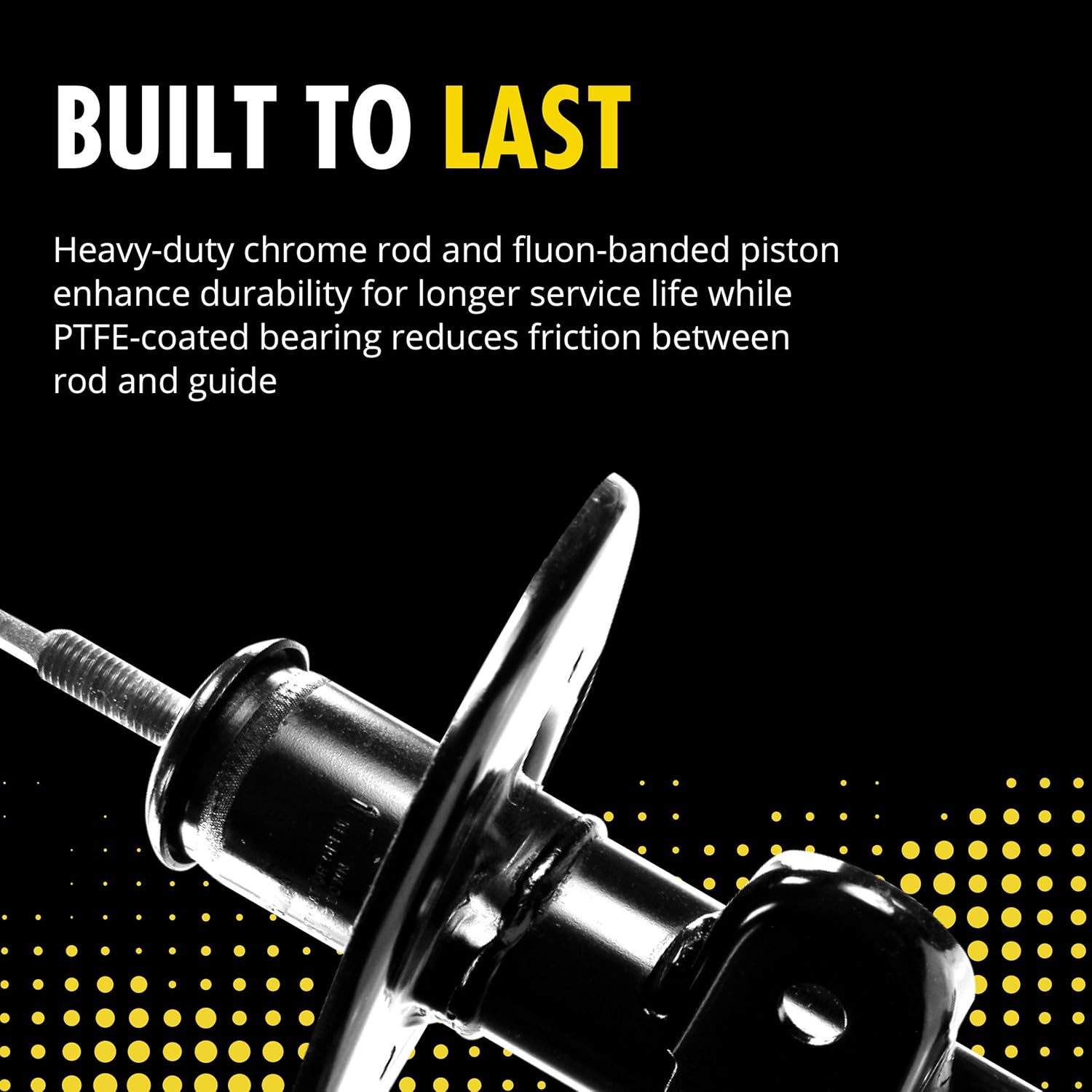 Durabilidade e Controle: Com um eixo cromado robusto e um pistão com banda de PTFE, a Monroe Magnum 553025 é construída para durar. O revestimento de PTFE no rolamento reduz o atrito entre o eixo e o guia, aumentando a durabilidade e a vida útil do produto. O pistão com banda de PTFE também melhora a resposta às superfícies da estrada, garantindo um controle superior em todas as condições.