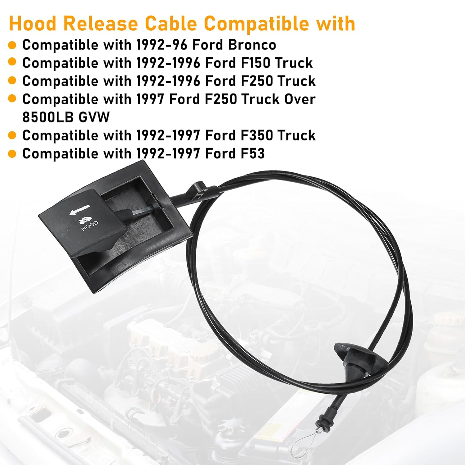 Cabo de Liberação do Capô Moonlinks Compatível com Ford Bronco F150 F250 F350 1992-1997