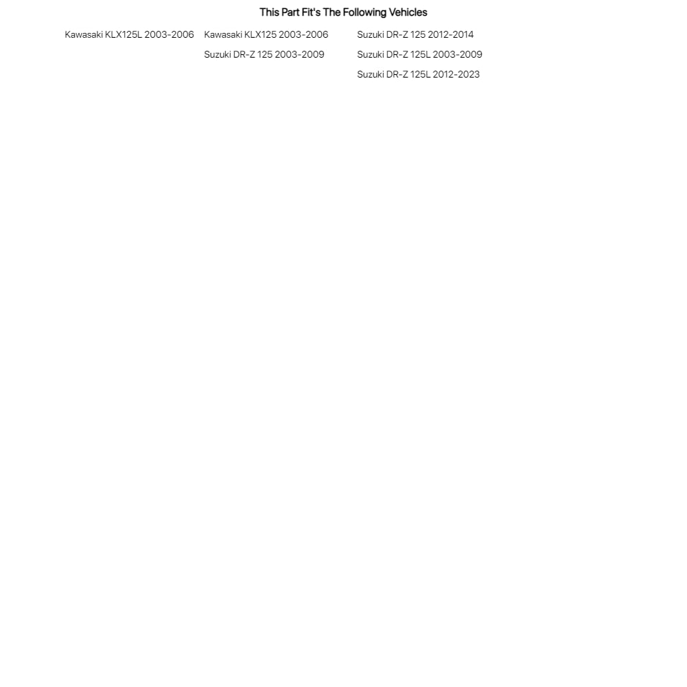 – Compatibilidade: Projetado especificamente para Kawasaki KLX125 (2003-2006) e outras máquinas conforme o guia de compatibilidade.