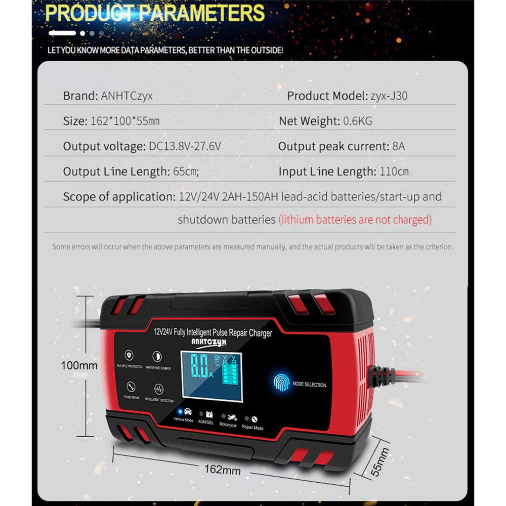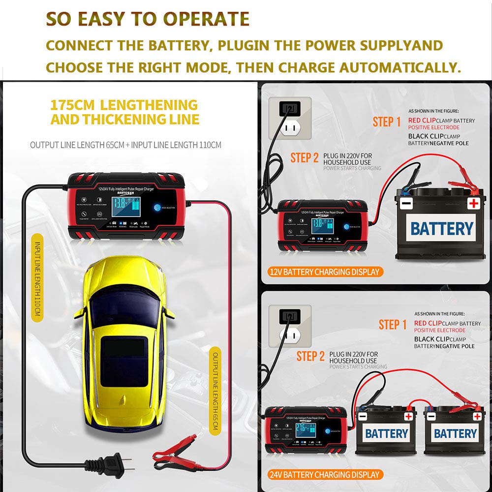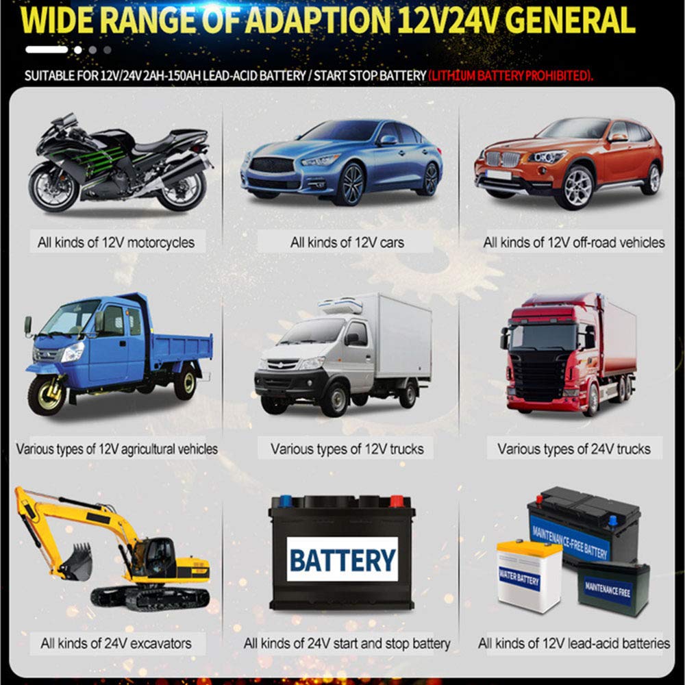 Este carregador de bateria é totalmente automático e possui 3 estágios de carregamento, protegendo sua bateria contra sobrecargas. É compatível com a maioria dos tipos de baterias, incluindo cálcio, GEL, AGM e baterias úmidas. Além disso, ele pode ajudar a restaurar baterias descarregadas e sulfatas, prolongando sua vida útil.