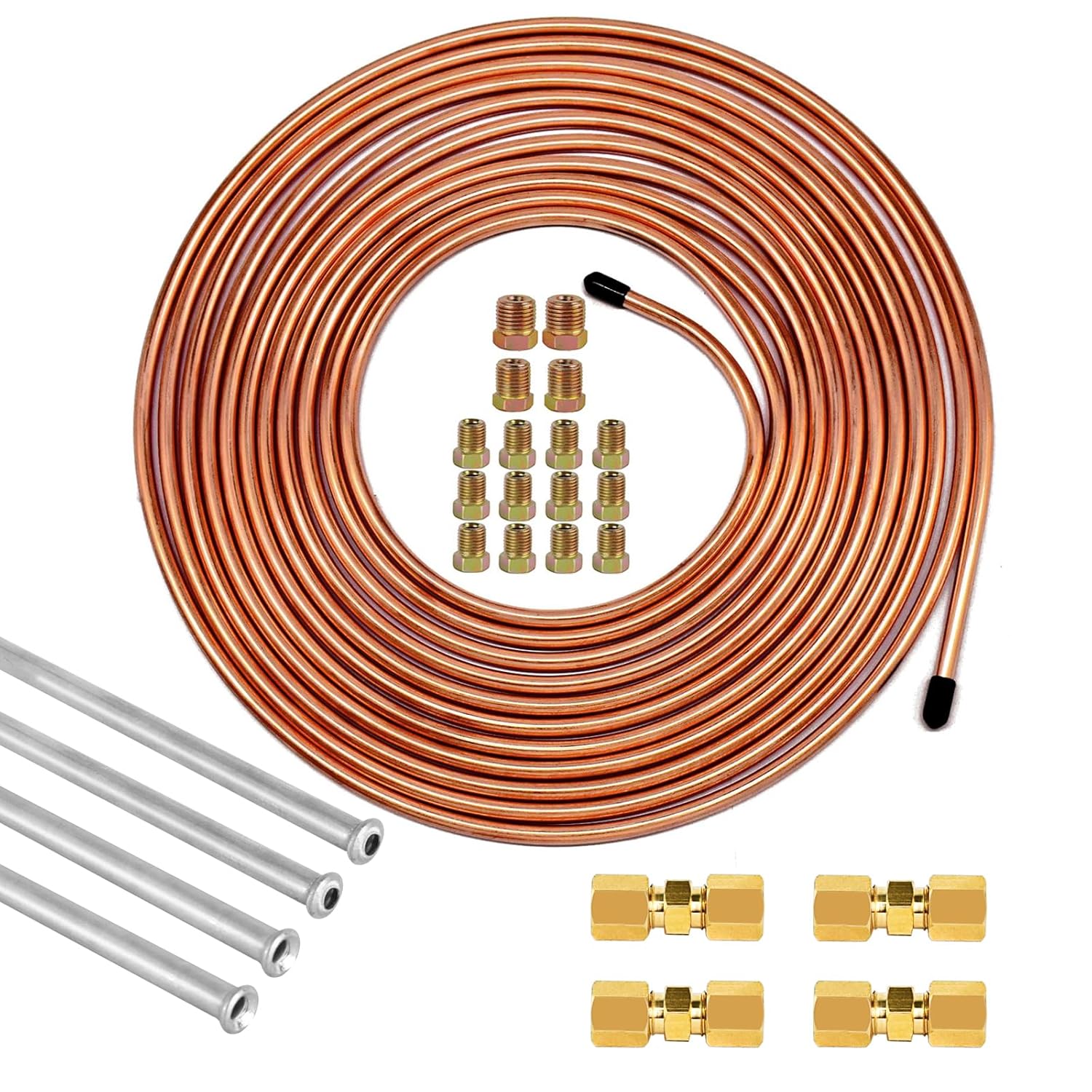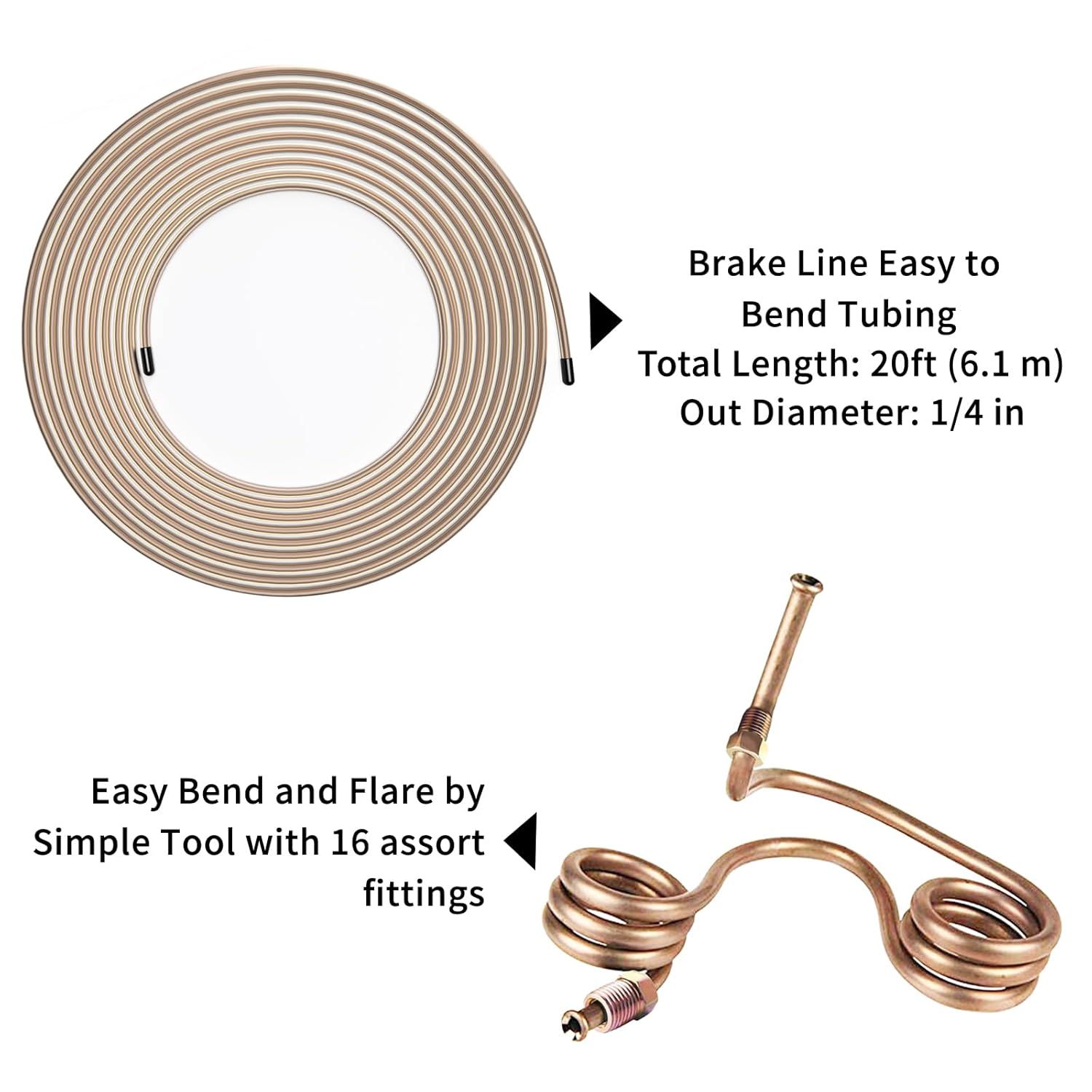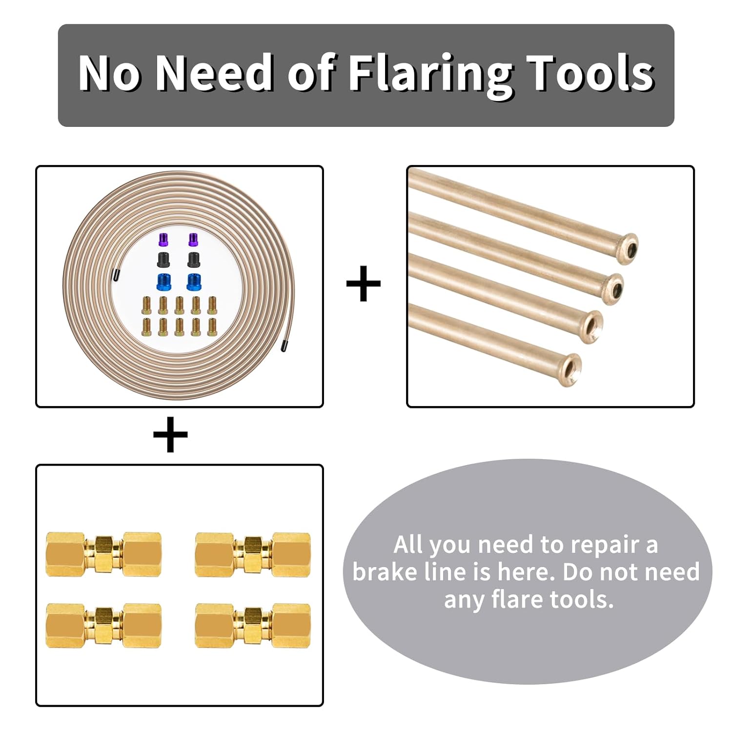 – Kit Completo de Substituição de Tubos de Freio: Inclui 1 tubo de freio de 20 pés, 16 porcas de tubo invertidas, 2 tubos com flare em bolha, 2 tubos com flare duplo e 4 uniões de compressão em latão.