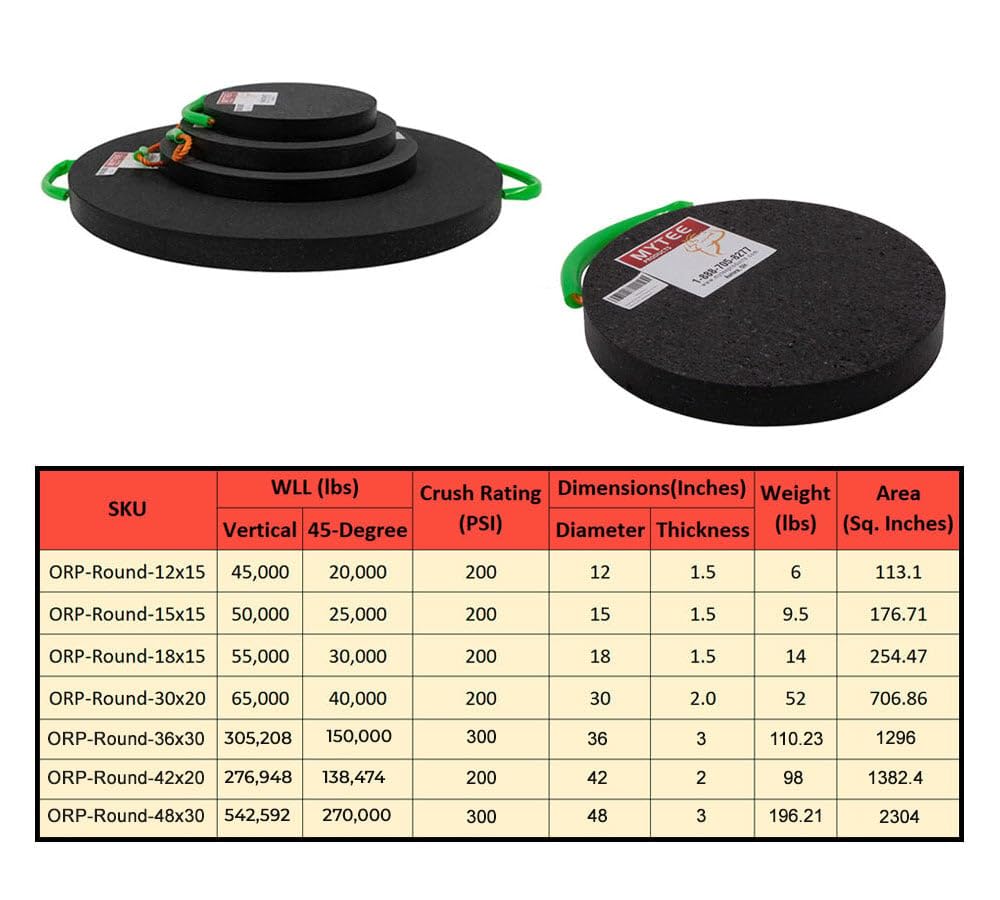 Os pads de outrigger redondos Mytee Products são a solução ideal para quem busca segurança e eficiência em operações que exigem suporte robusto. Com um diâmetro de 15 polegadas e uma espessura de 1,5 polegadas, este conjunto de quatro pads é projetado para suportar cargas pesadas, com um limite de carga de trabalho de 50.000 lbs. Cada pad possui uma classificação de compressão de 200 PSI, garantindo que eles possam suportar as exigências mais rigorosas de qualquer ambiente de trabalho.