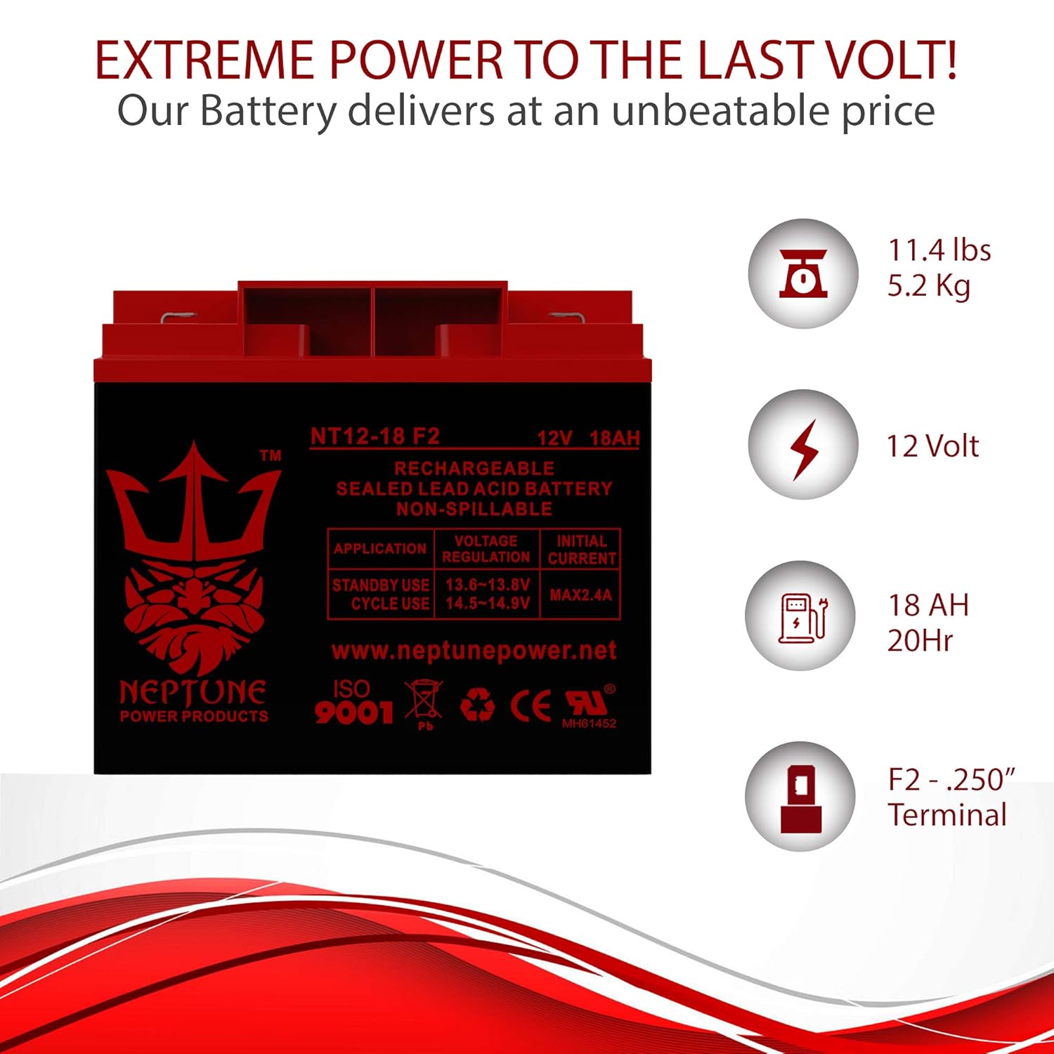 Bateria de Substituição Neptune 12V 18AH F2 SLA para Power Sonic PS-12180-2 Pack