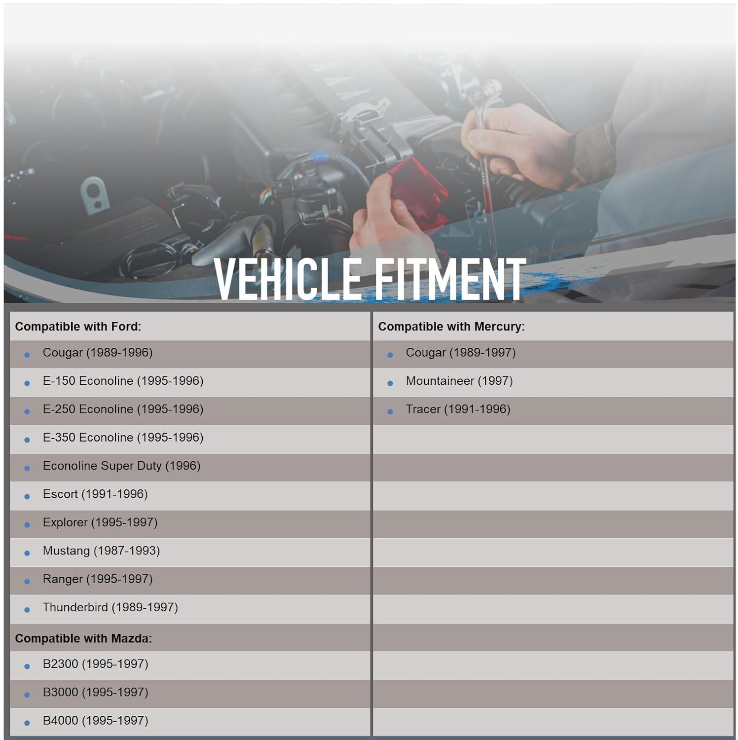 Resposta: Sim, este motor é compatível com os modelos Ford E-350, E-250, E-150 Econoline (1995-1996), Ranger, Explorer (1995-1997), Mustang (1987-1993) e Thunderbird (1989-1997).