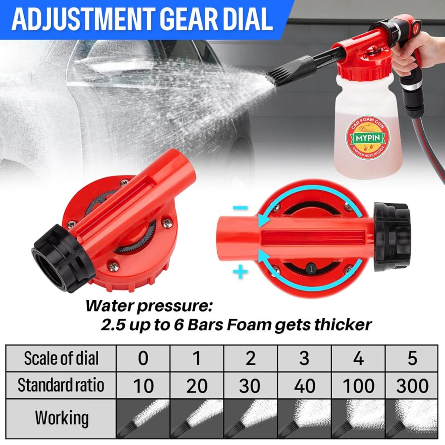 Compatível com mangueiras de 1/2” e dois tipos diferentes de torneiras, a pistola é fácil de conectar e não apresenta vazamentos. O design ergonômico do cabo proporciona conforto durante o uso, enquanto o dial de ajuste permite uma limpeza mais profunda com espuma mais espessa ou uma irrigação suave para suas plantas.