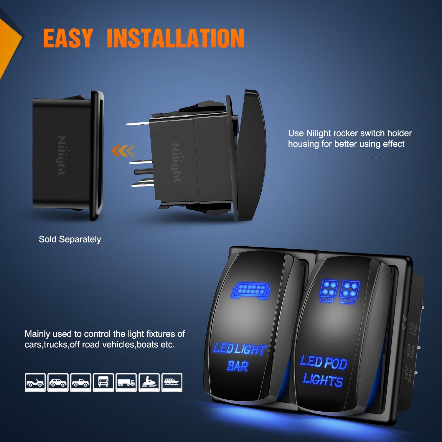 2 great custom switches needed for my light panel in my truck. Another great Nilight product been using their lineup for years. I recommend any of their fine offroad lights or vehicle accessories.